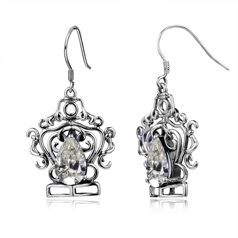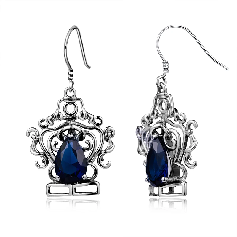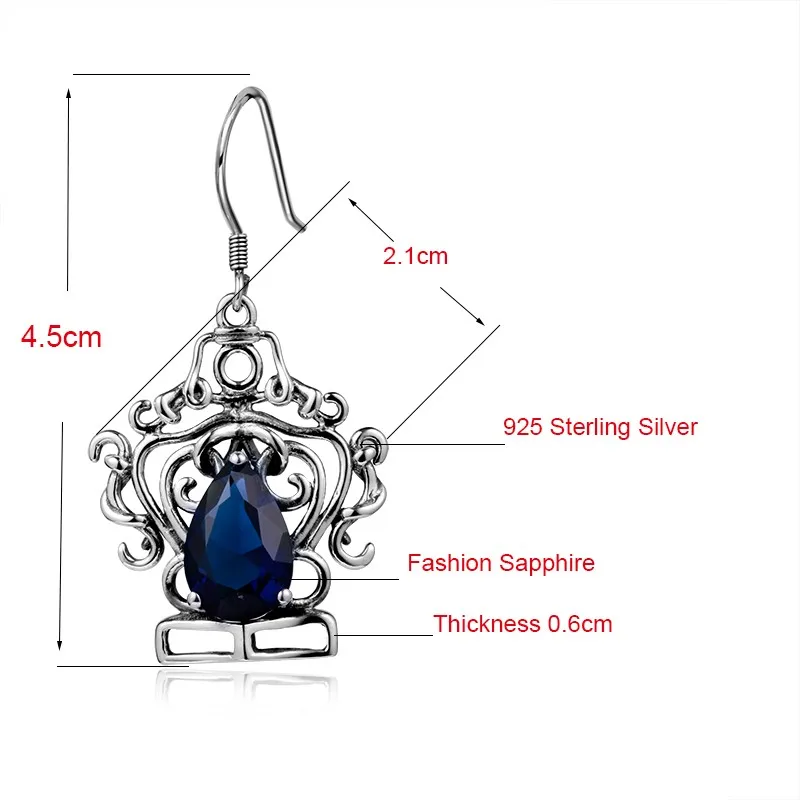 Women 925 Sterling Silver Earrings Vintage Bohemian Eardrop Handmade Crown Lady Wedding Party Earring Lab Precious Stone Jewelry