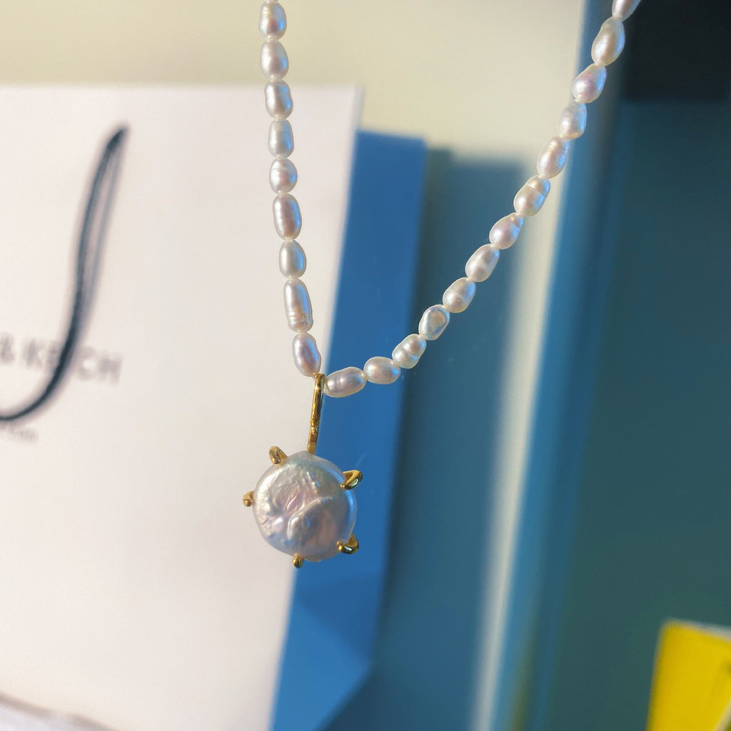 Women baroque pearl neckalce with pearl pendant real gold plated jewelry