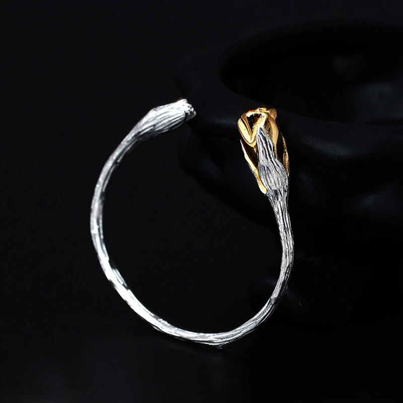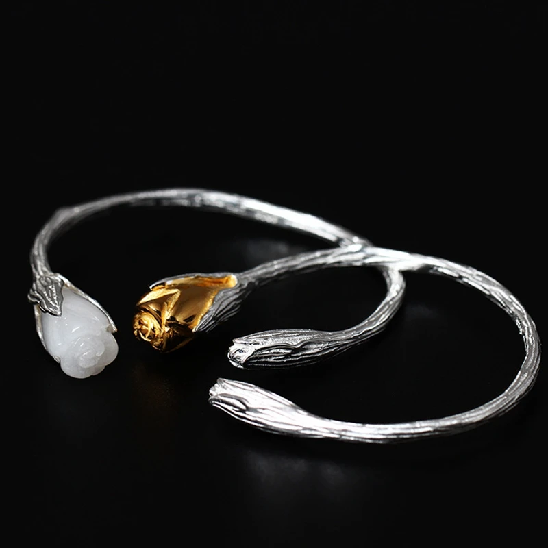 Women genuine jade bangles 925 sterling silver mosaic white jade gold color orchid design charms bangles for women jewelry gift