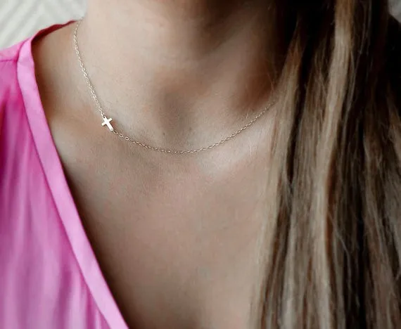 Women Gold Sideways Cross Necklaces Tiny Cross Collares Femme Collares Jewelry Celebrity Chain Choker Necklace bijoux