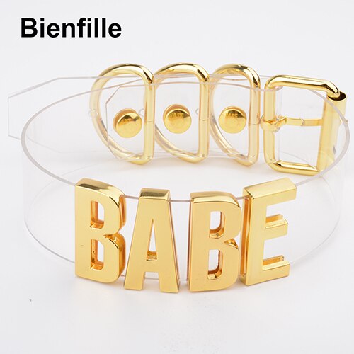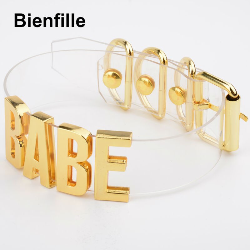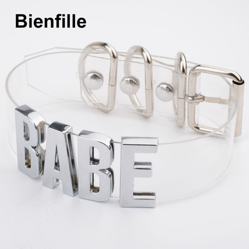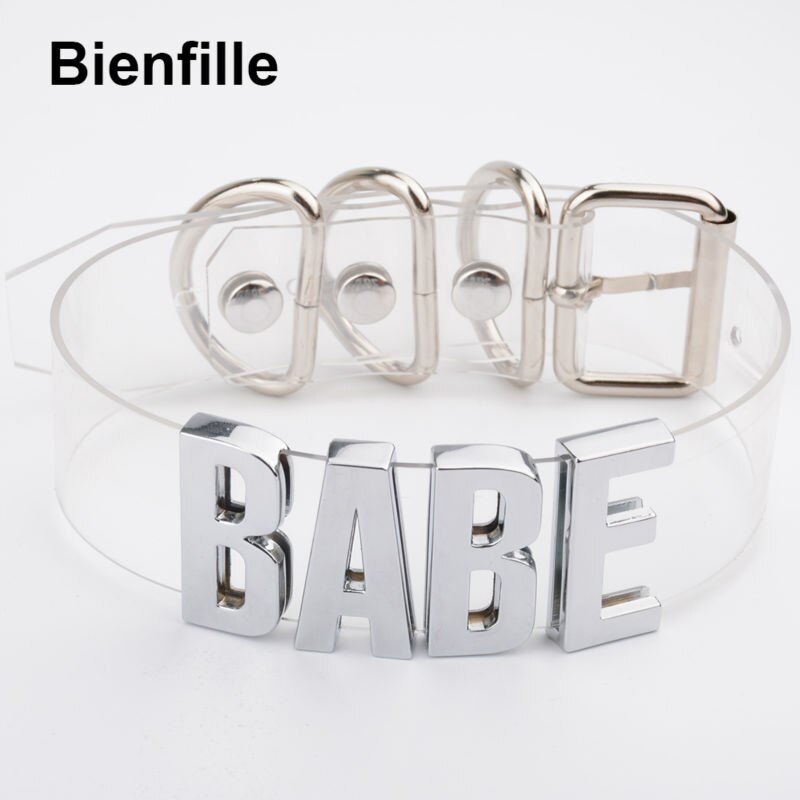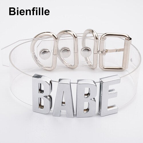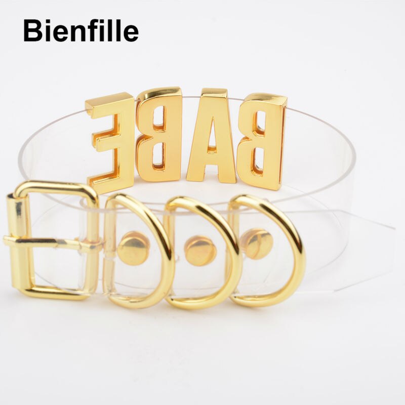 Women Men Unisex Custom Handmade Letter Choker Necklace Kawaii Punk Goth BDSM Collar Gold Metal Transparent Leather BABE Choker