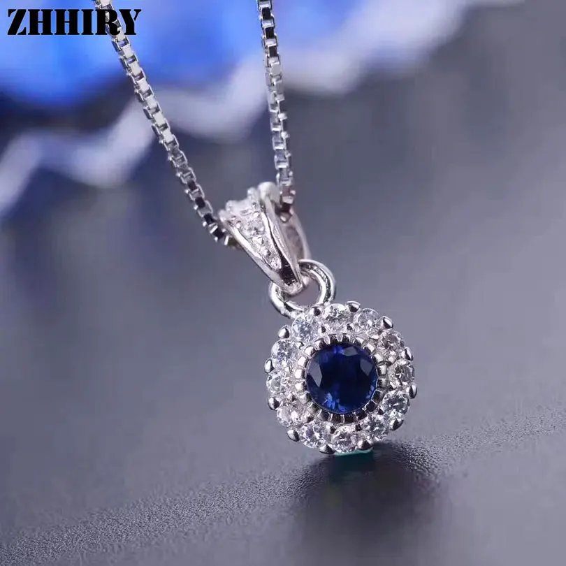Women Natural Sapphire Gemstone Jewelry Set Genuine 925 Sterling Silver Necklace Pendant Earrings Ring