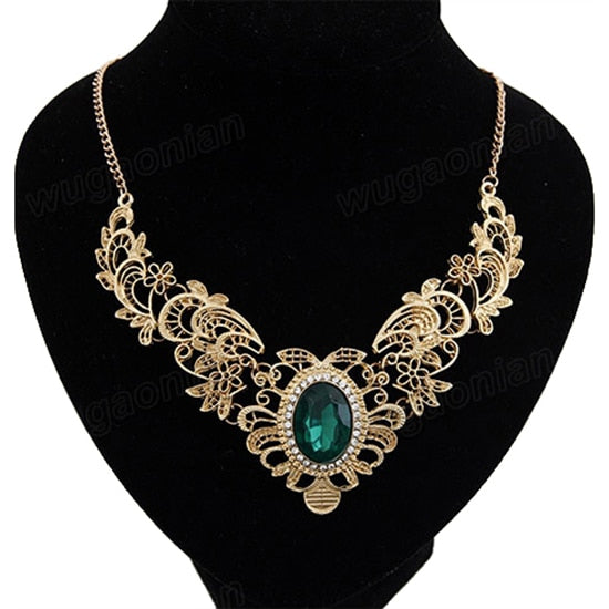 Features: : Luxury Necklace, Oval Rhinestone, Hollow, Flower