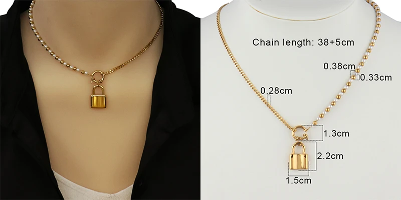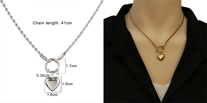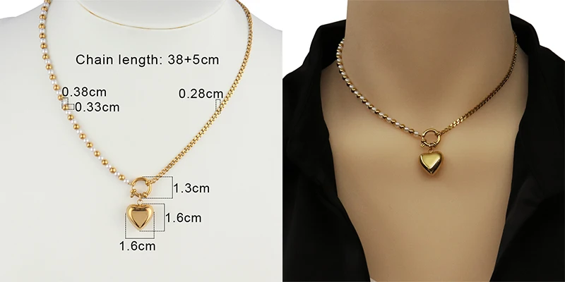 Women’s Stainless Steel Necklace Twist Chain Pearl necklace Hollow Lock Heart Pendant Necklaces For Women Jewelry Necklaces