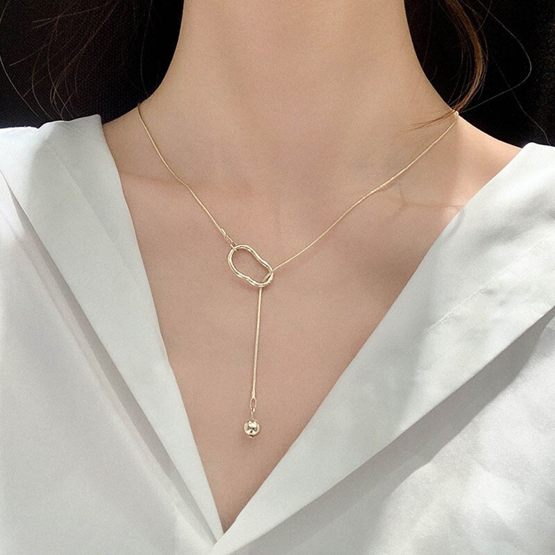 Women Simple Necklace Oval Small Ball Pendant Choker Chain Jewerly MX0099