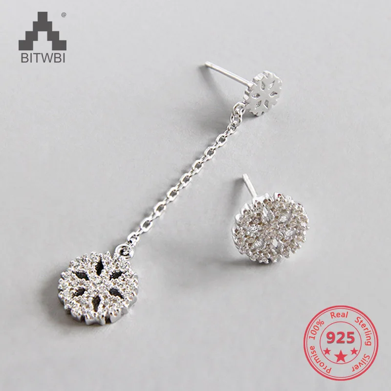 Women Snowflake Asymmetric Drop Earring 100% Real 925 Sterling Silver Jewelry High Quality AAAA Zircon Pendientes