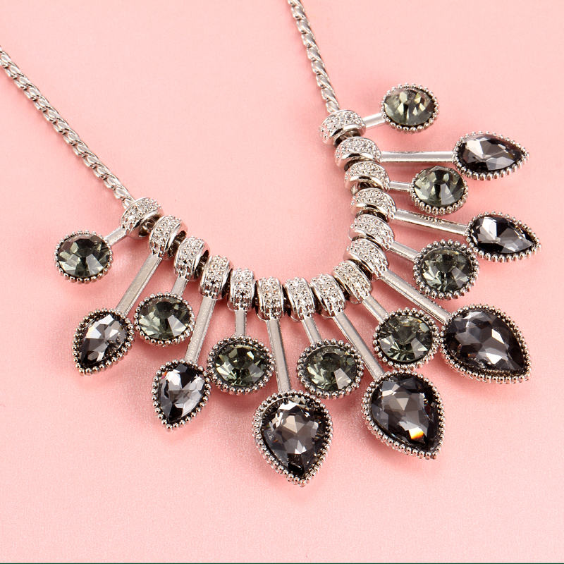 Women Statement Choker Necklaces 2021 Crystal Rhinestone Charm Black Stone Drop Necklace Beads Collier Femme 2021