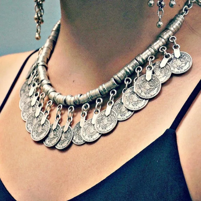 Women Stylish Pretty Boho Ethnic Statement Bib Pendant Collar Choker Coin Necklace NOV99