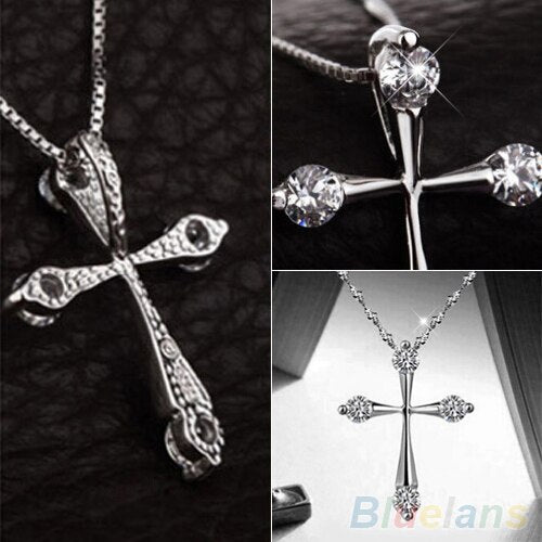 Women's Cross Zircon Copper Chain Pendant Necklace