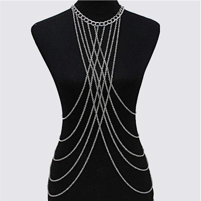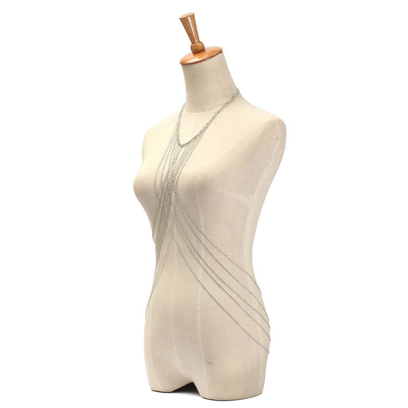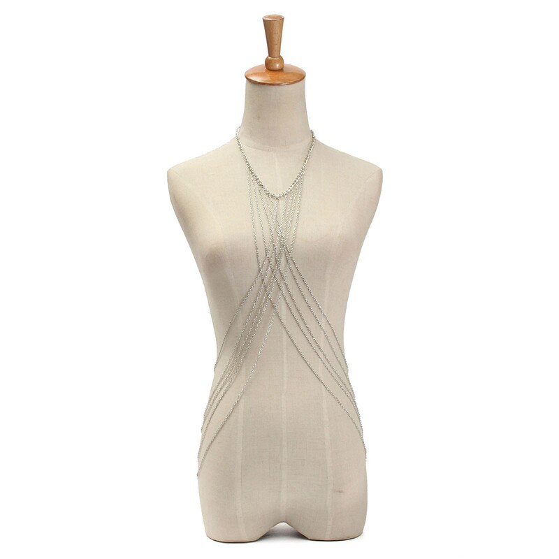 Womens Sexy Summer Beach Tassel Body Waist Chain Fringe Cross Tie Shoulder Bikini Harness Belt Chain Waistband Necklace
