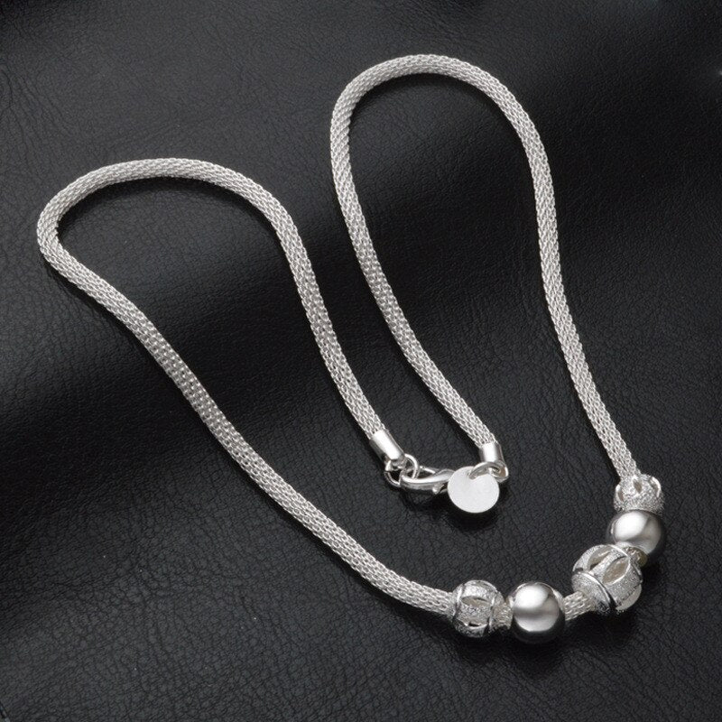 Women's Unique Retro Carved Beads Pendant Classic Mesh Weave Chain Necklace Jewelry NL0468