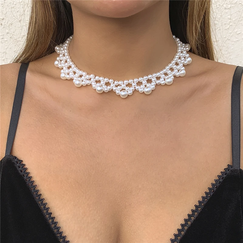 Woven Simulated Pearl Bridal Wedding Accessories Vintage Clavicle Chain Necklace For Women Gifts Jewelry 2022 Bijouterie
