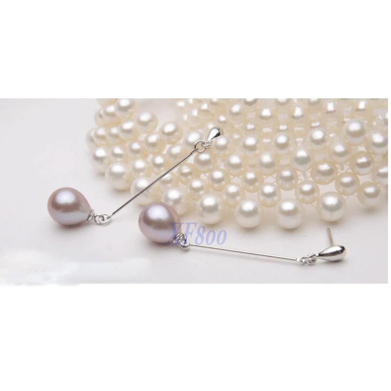 Natural Pearl Earrings Long Drop Earrings Fine Jewelry White&Pink&Purple Pearl Wedding Gift For Women S17