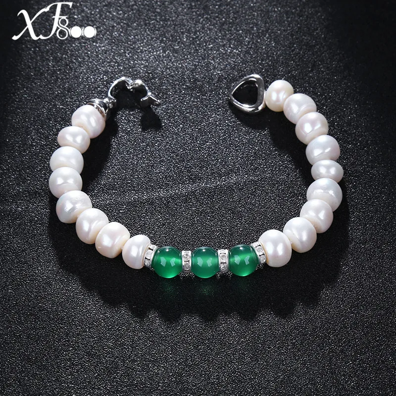 [XF800]Pearl Jewelry Sets For Women Genuine Fresh Water White 9-10mm Pearl Necklace Bracelet With Agate For Mother's day[T222]