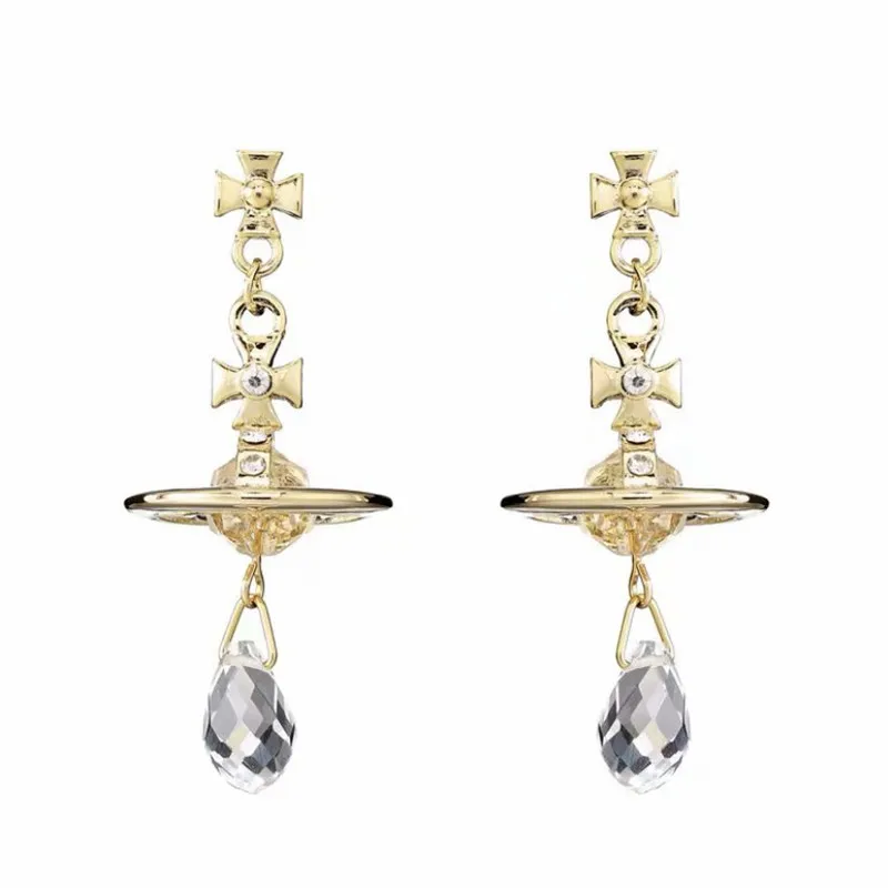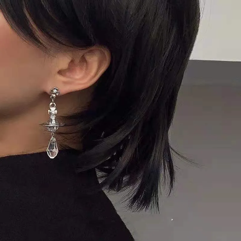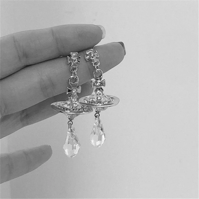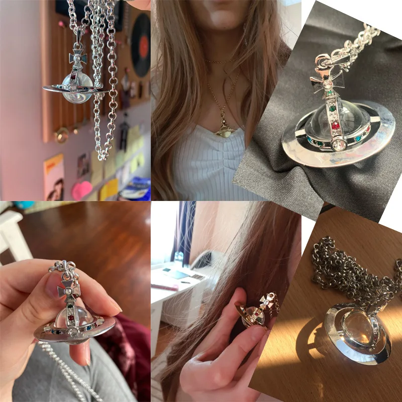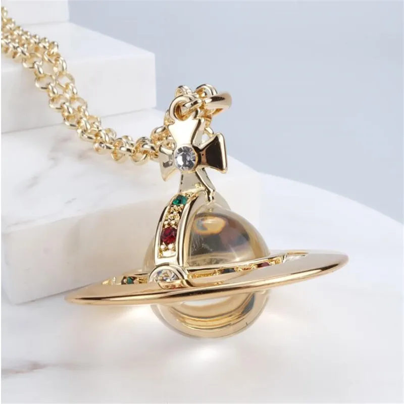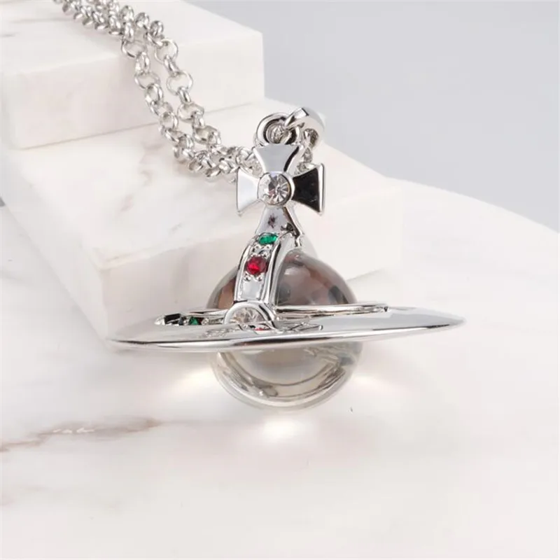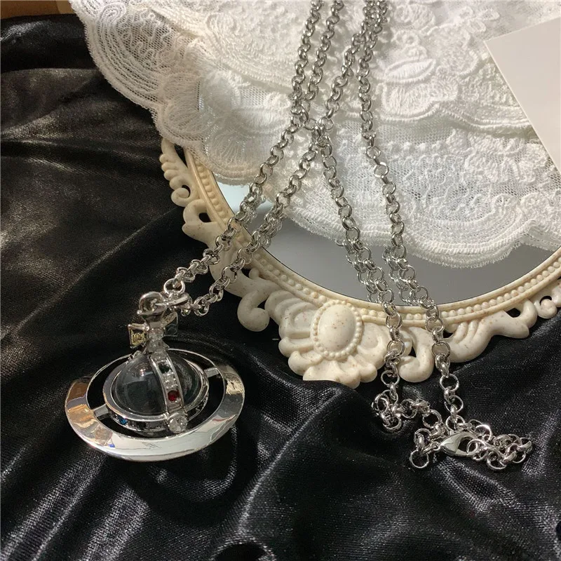 XIALUOKE Geometric Metal Planet Flying Saucer Pendant Necklace Inlaid Crystal Glass Bead Long Necklace Party Jewelry
