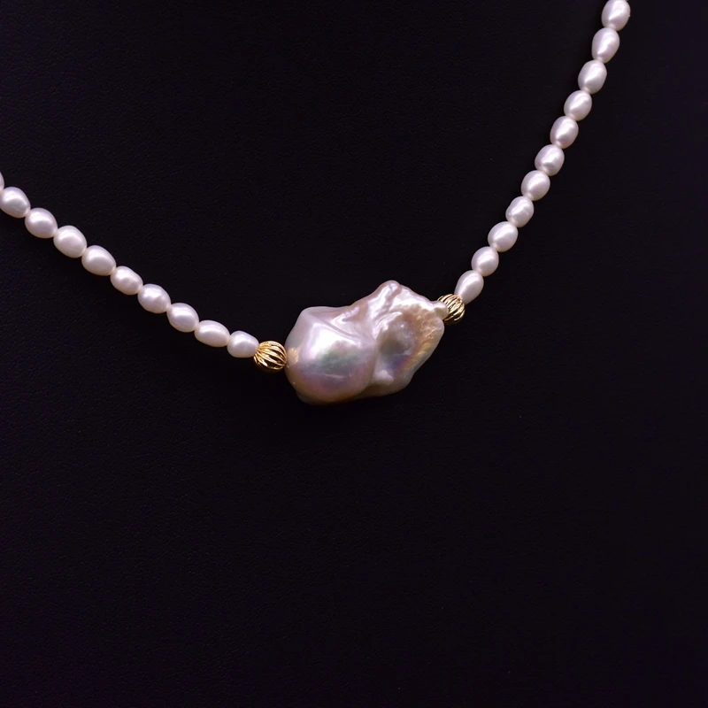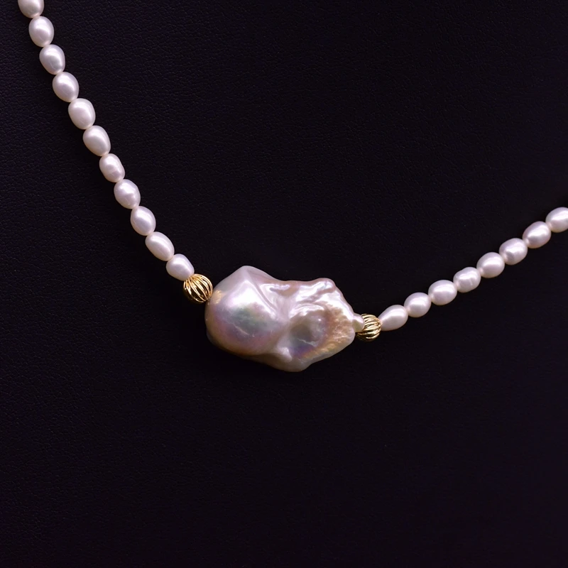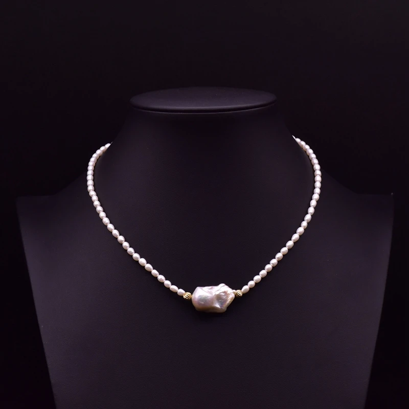 XlentAg Natural Freshwater Pearls Beaded Necklaces & Pendants Baroque Pearl Iced Out Women Accessories Friendship Jewelry GN0202