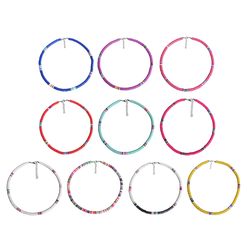 Y166 Bohemian Beach Colorful Clay Beaded Choker Boho Rainbow Polymer Clay Necklace Jewelry for Women Girls Adjustable