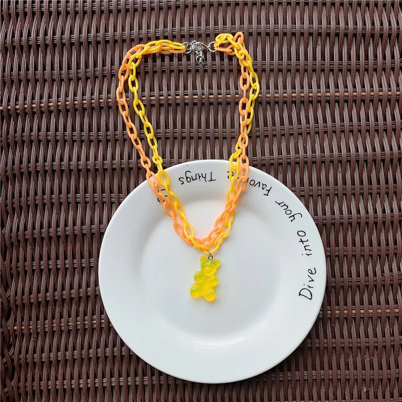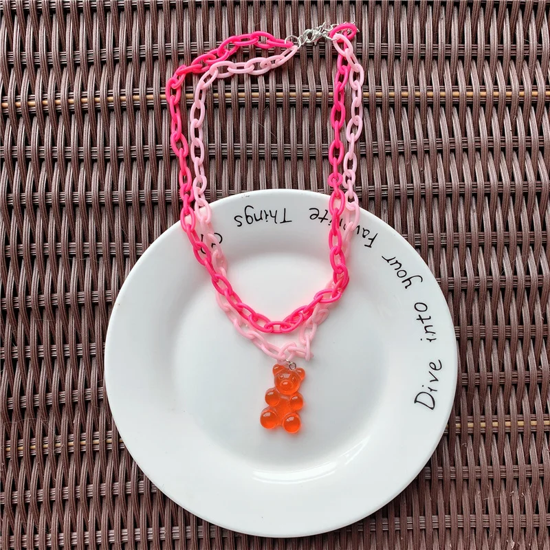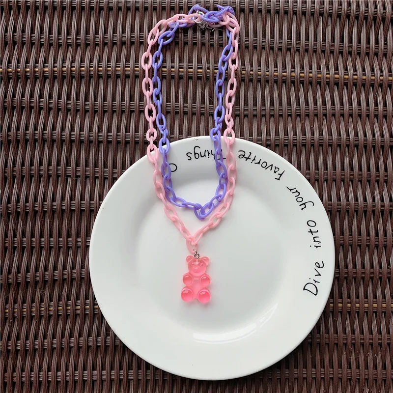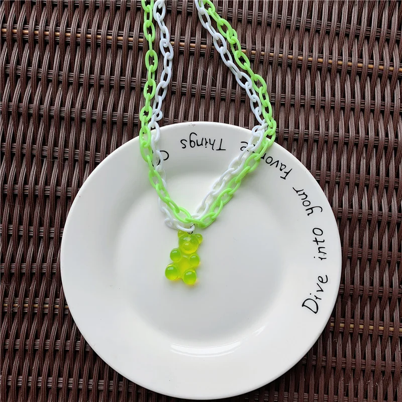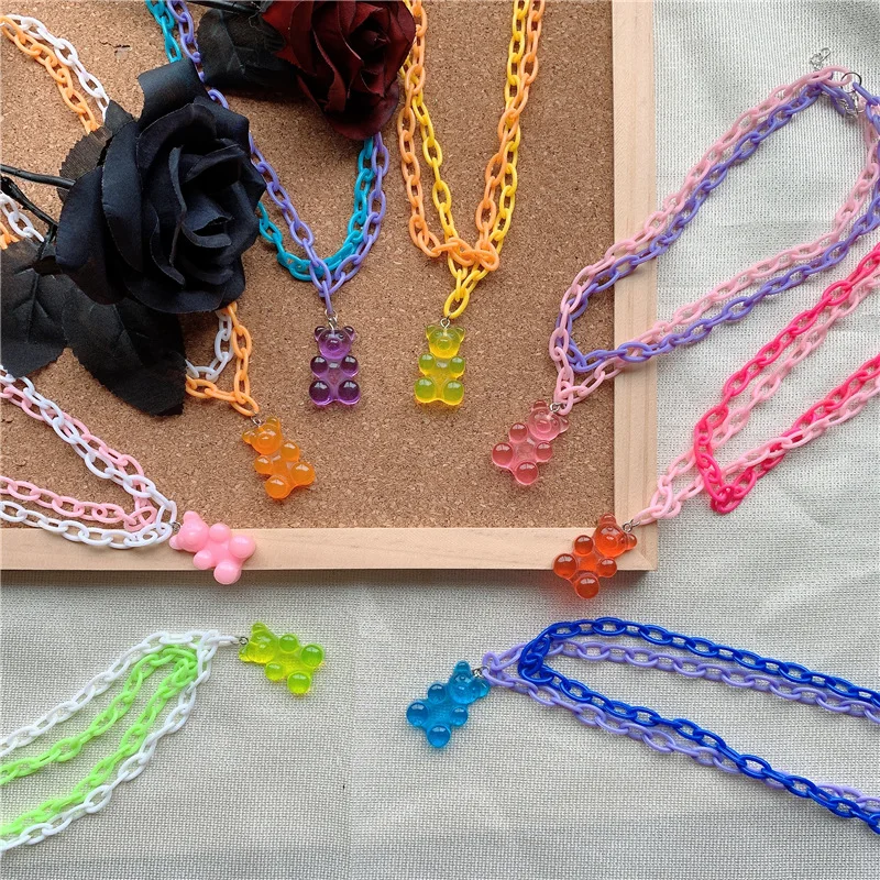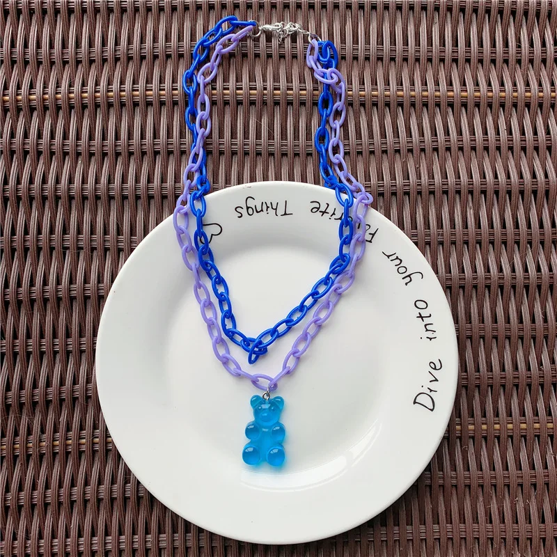 Y2K Cute Cartoon Candy Gummy Bear Choker Necklace For Girls Double Layer Two Color Contrast Acrylic Chain Necklace Jewelry Gifts