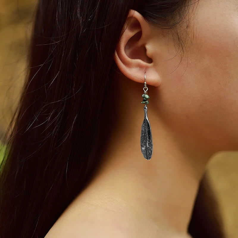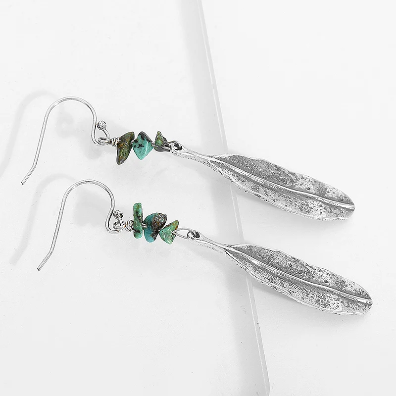 925 Sterling Silver Leaves Drop Earrings With Turquoise for Women Vintage Style Fashion Plant Long Drop Earrings Jewelry