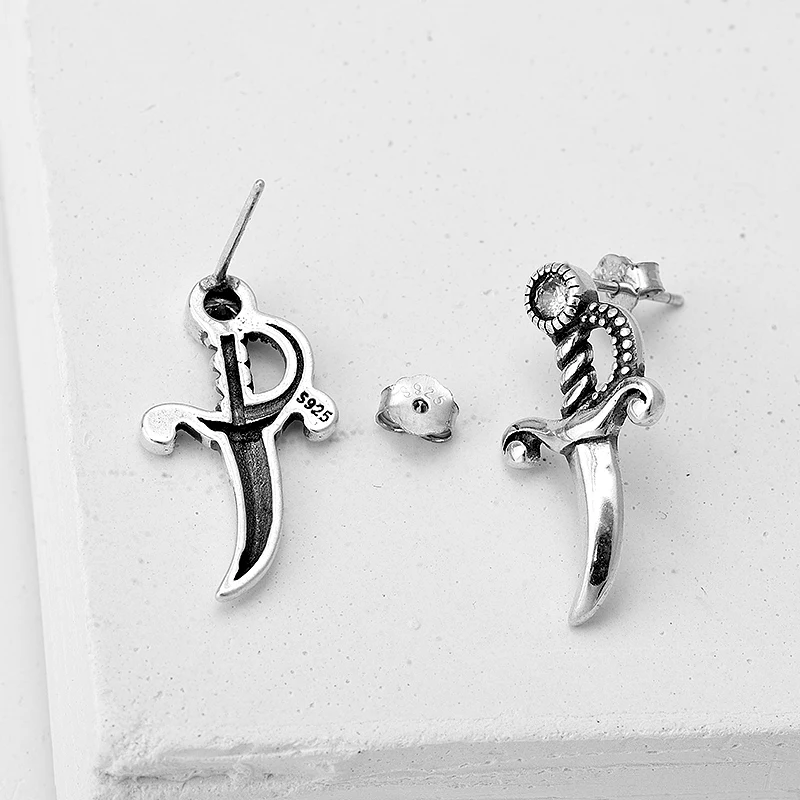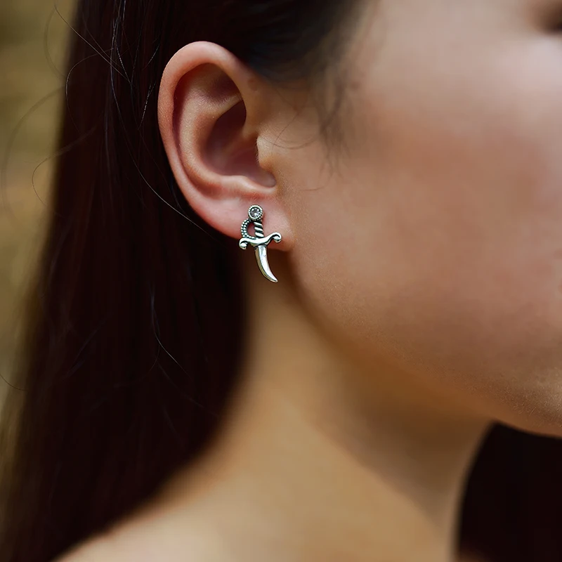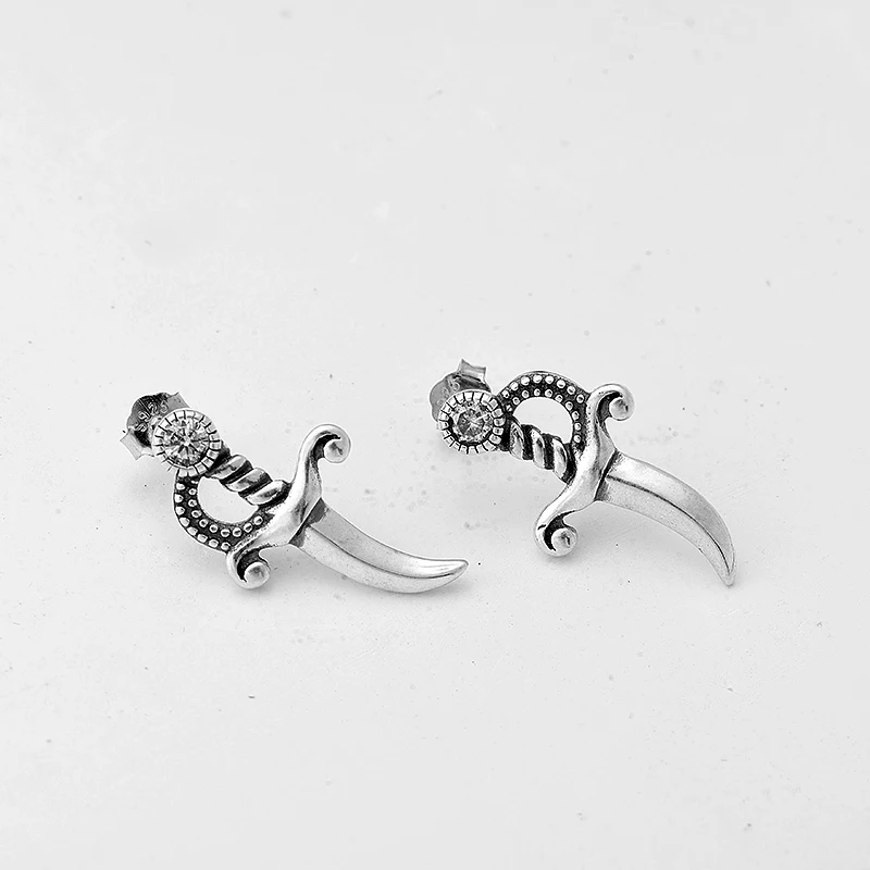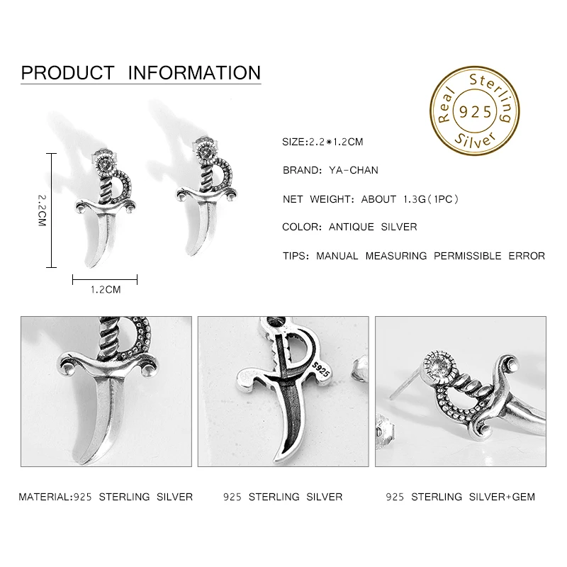 Fashion 925 Sterling Silver Geometric Stud Earrings For Women Vintage Sword Shaped Turkish Stud Earrings fine Jewelry