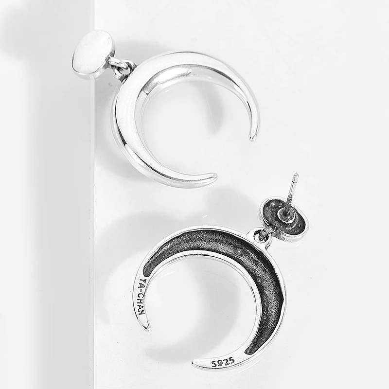 NEW Fashion Crescent Stud Earrings 100% Pure 925 Sterling Silver For Women Moon Stud Earrings Fine Jewelry