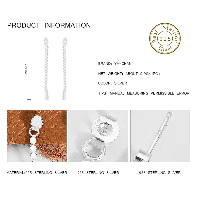 925 Sterling Long Dangle Earrings Chain Ear Drop Earings Pierced For Women Double Earrings Silver Hanging Earring Brinco