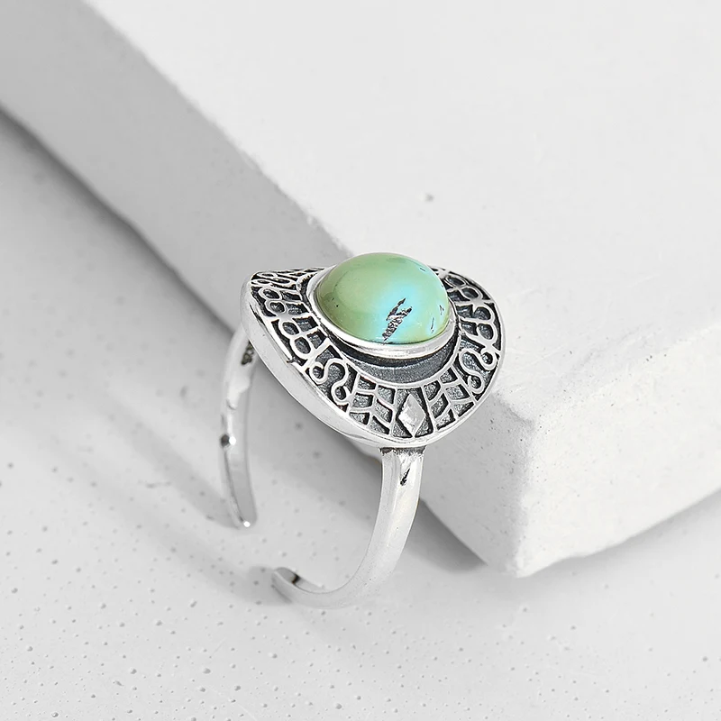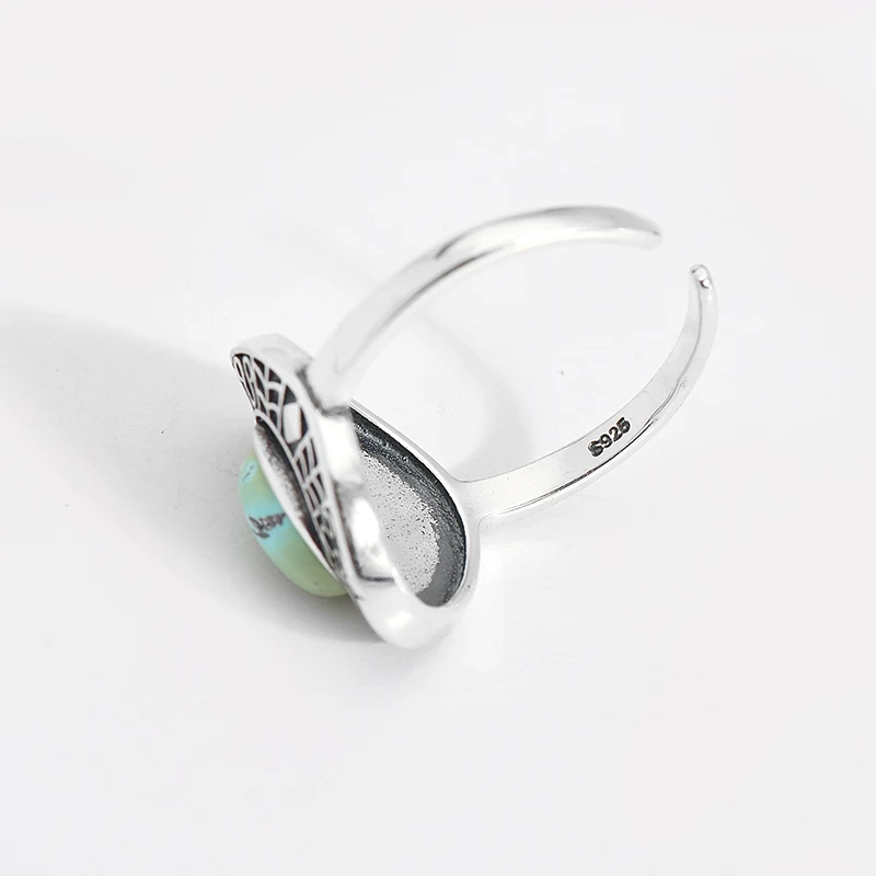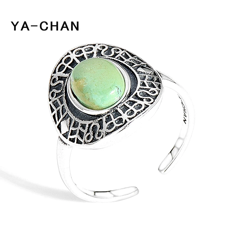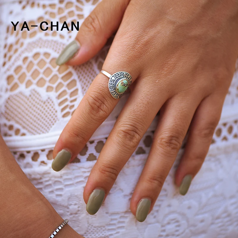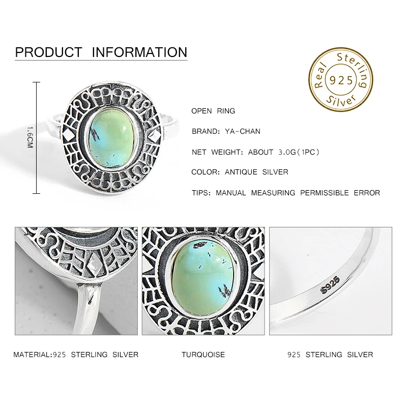 Vintage Style Real 925 Sterling Silver Turquoise Rings Adjustable Ellipse Geometric Rings Fine Jewelry For Women Gift