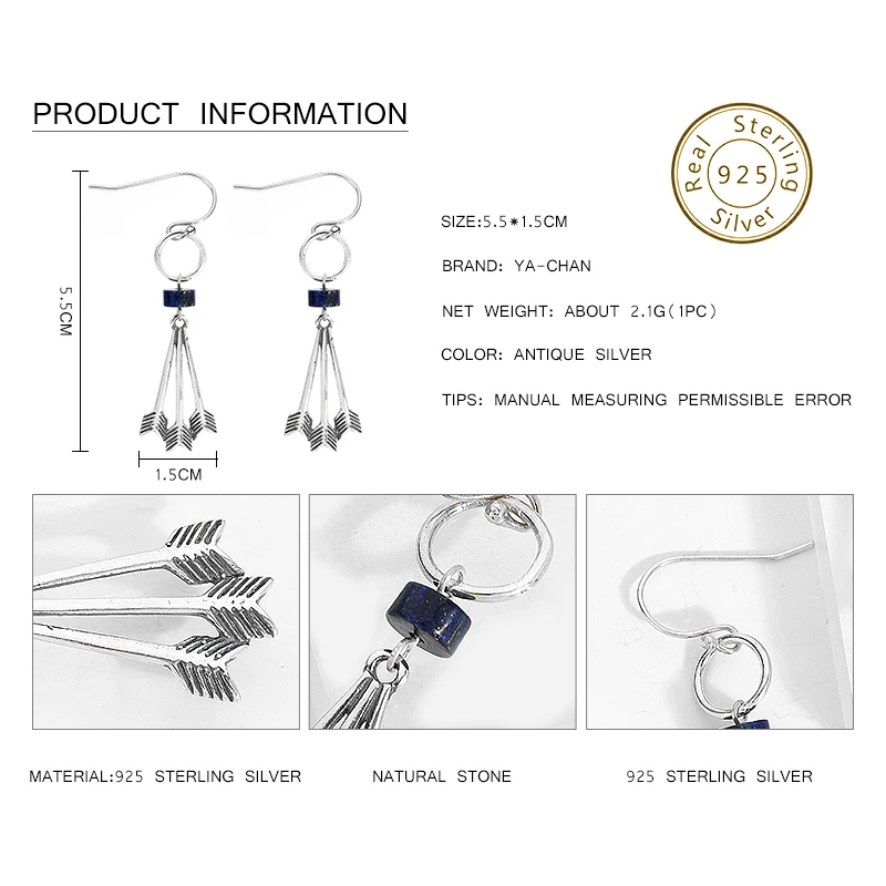 Vintage Style 925 Silver Arrow Earrings Natural Stone Drop Earrings For Women Fashion Sterling-Silver-Jewelry 2020