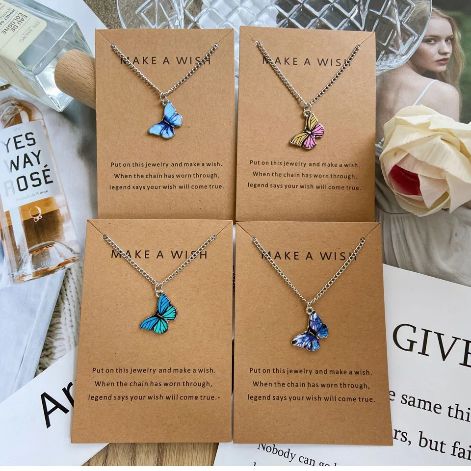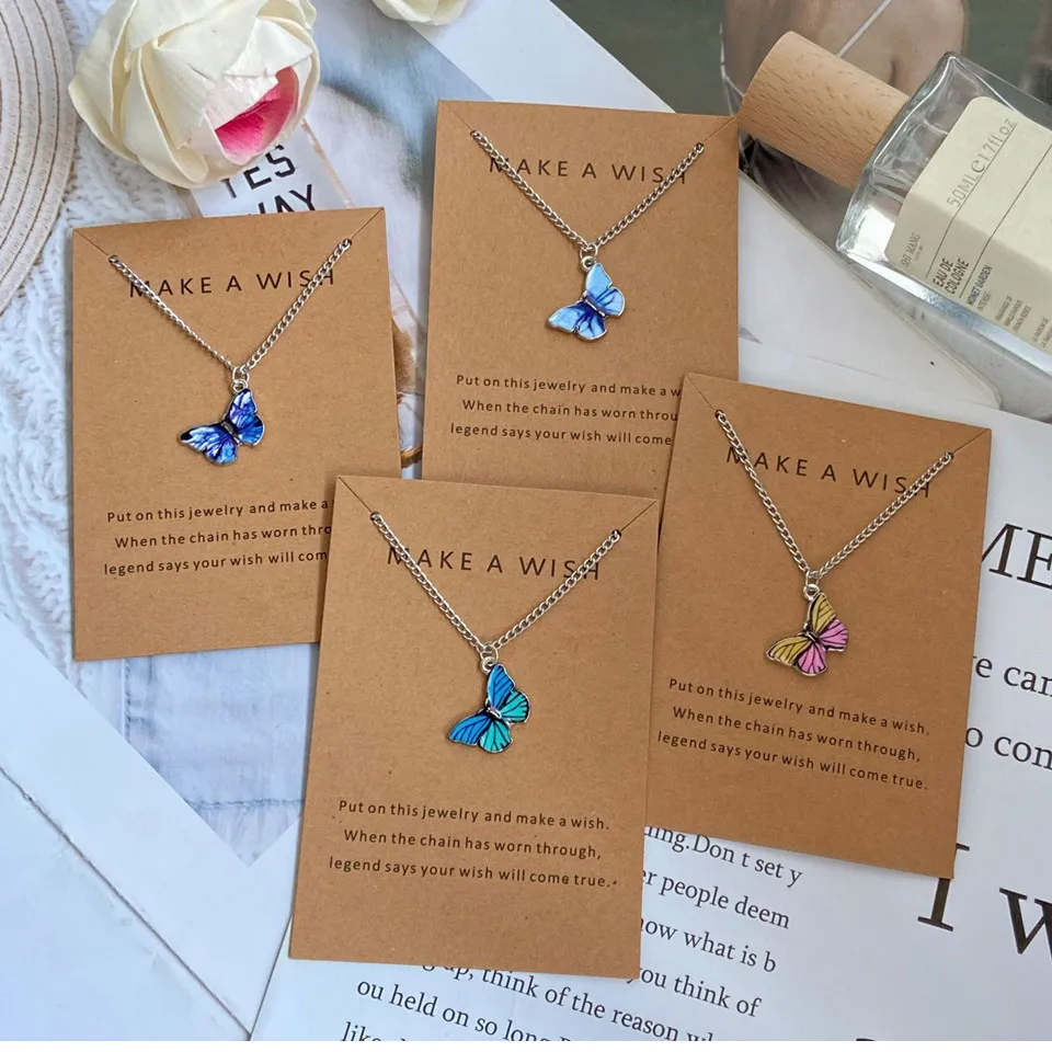 YCD Korean Trendy Blue Purple Butterfly Pendant Necklace Vintage Charm Choker Necklaces for Women Jewelry Gifts