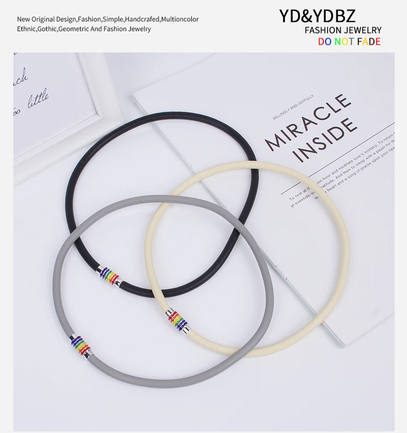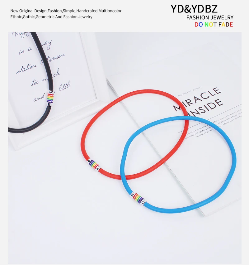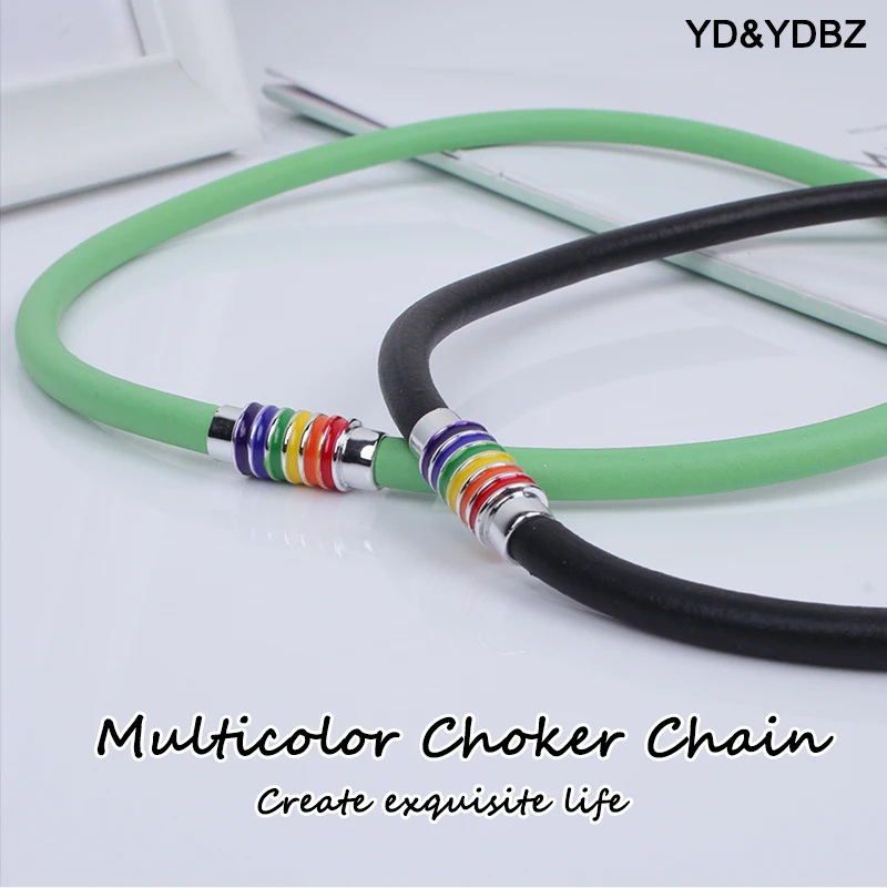 YD&YDBZ Simple Multicolor Rubber Choker For Women Punk Style Colorful Metal Pendant Necklaces Sweater Chain Jewelry Accessories