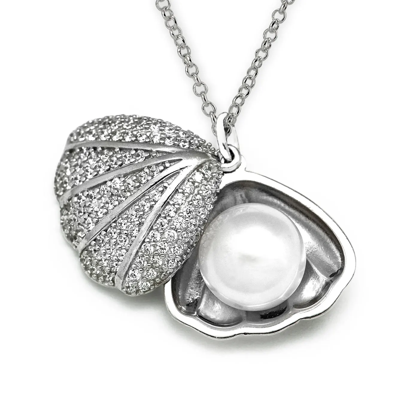 Yellow/Rose/White Shell Half Round Natural Pearl 925 Sterling Silver Necklace