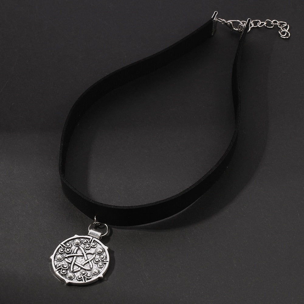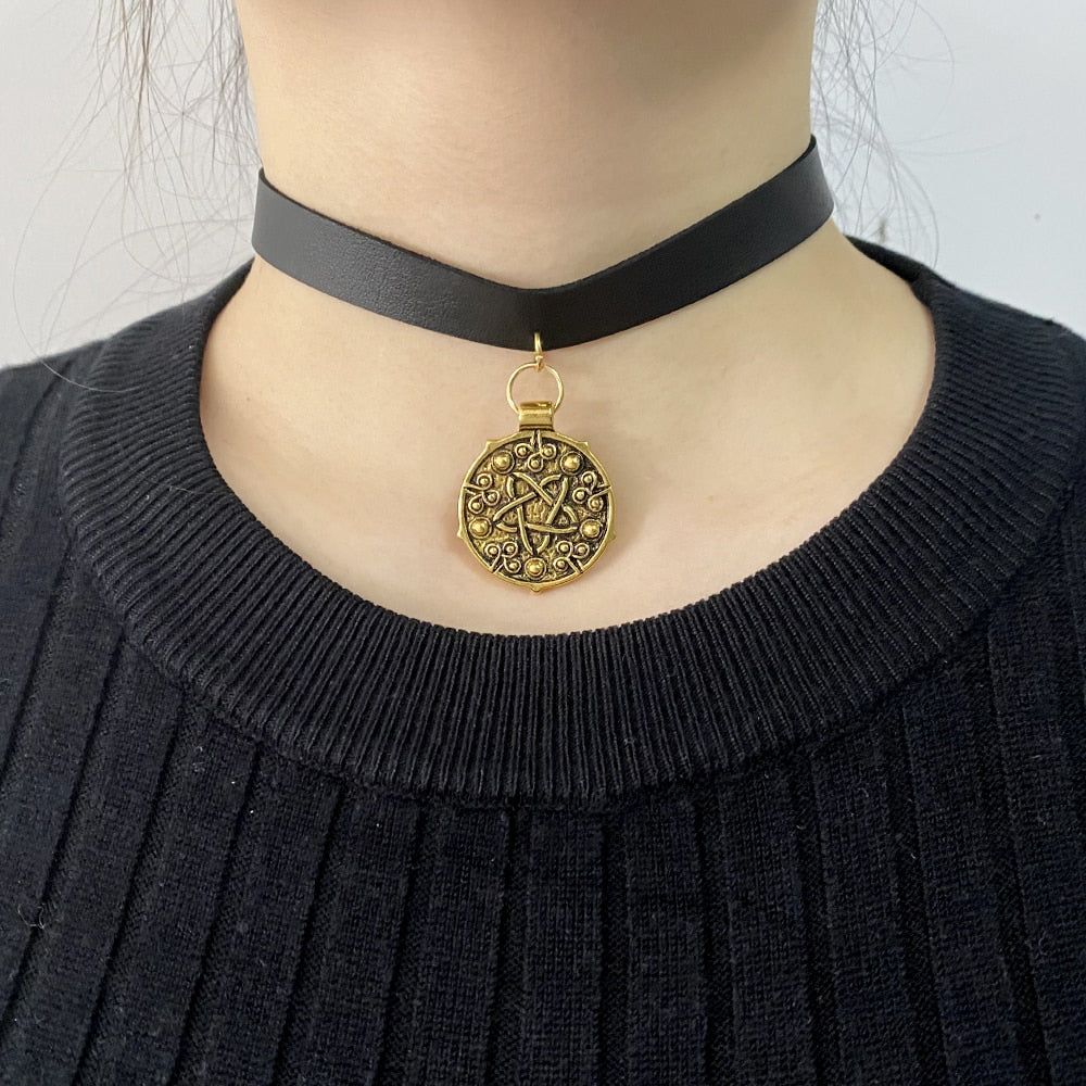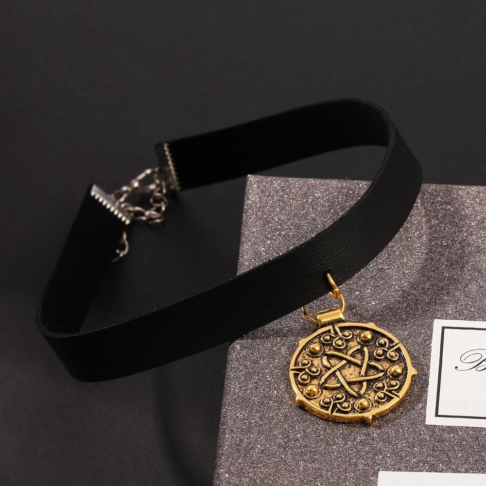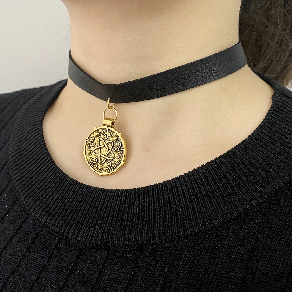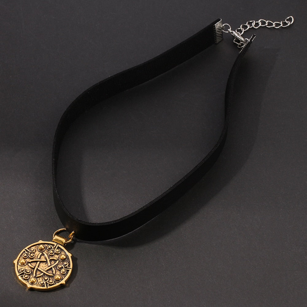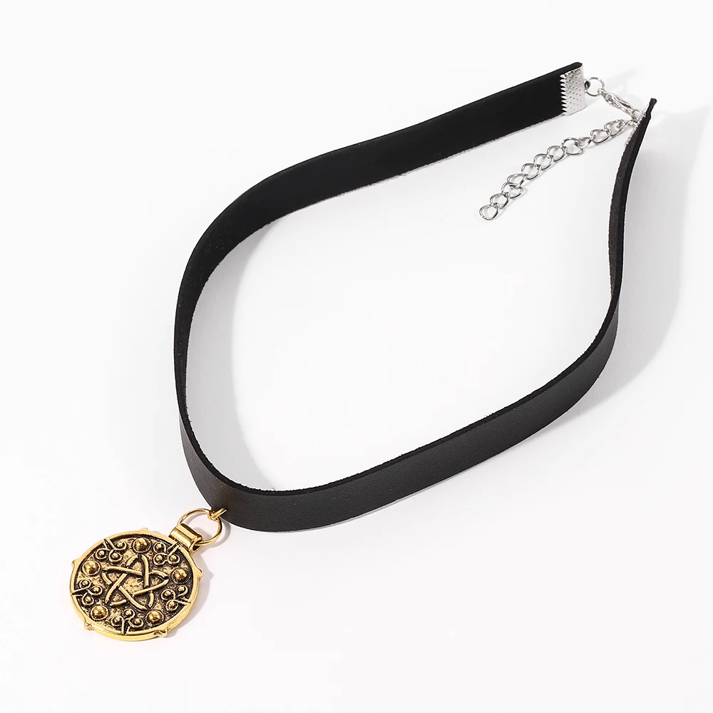 Yennefer Black Leather Choker Medallion Pendant Necklace Wizard 3 Wild Hunt Game Jewelry Gothic Necklace Women Party Cosplay