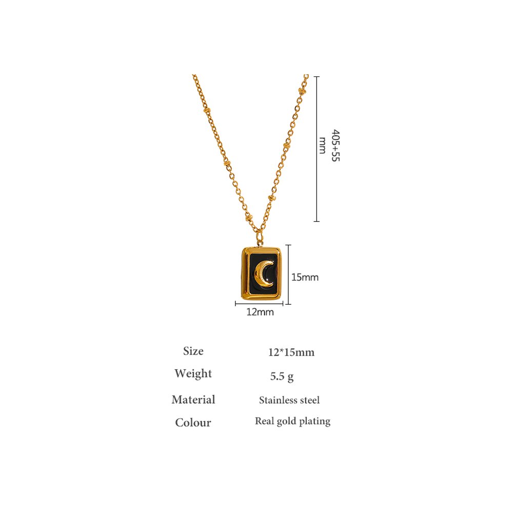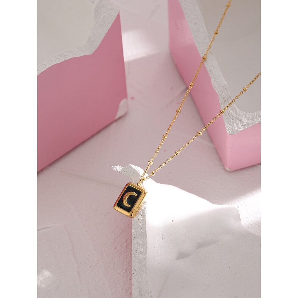 Yhpup Stainless Steel Enamel Moon Pendant Necklace Titanium Steel Jewelry Stylish Metal Square Collar Necklace Anniversary Gift