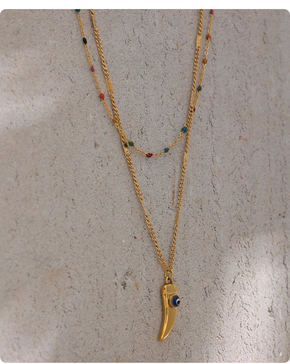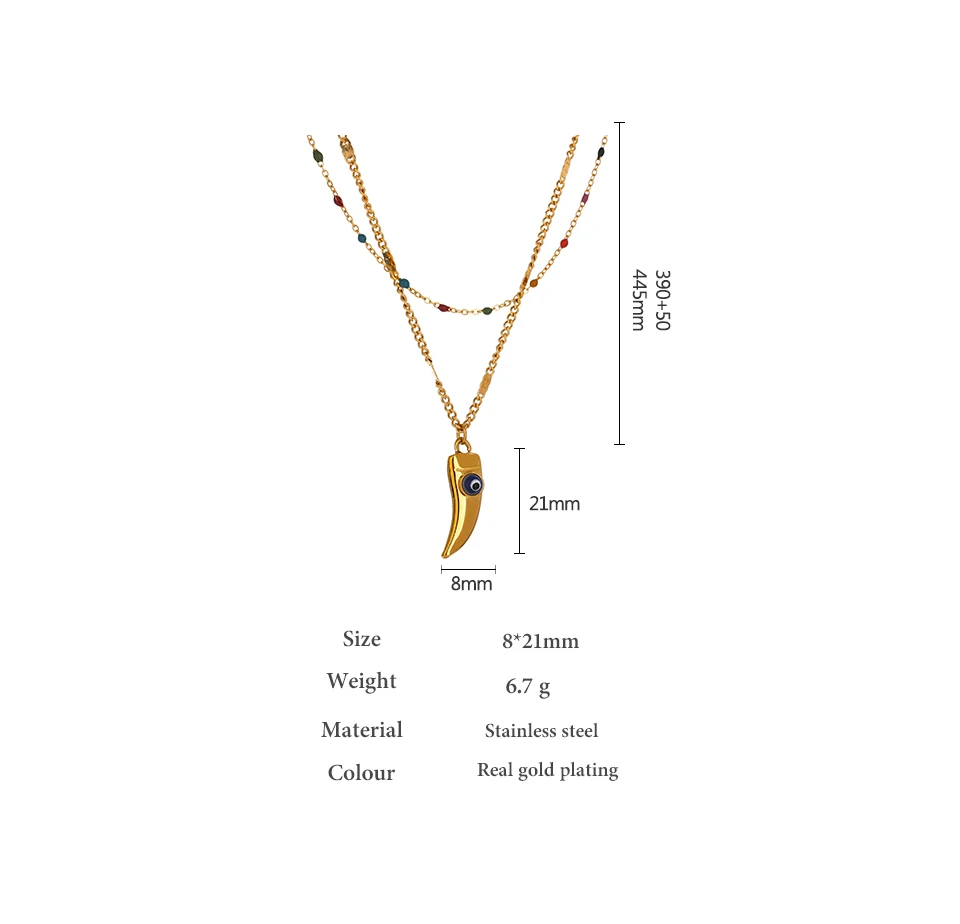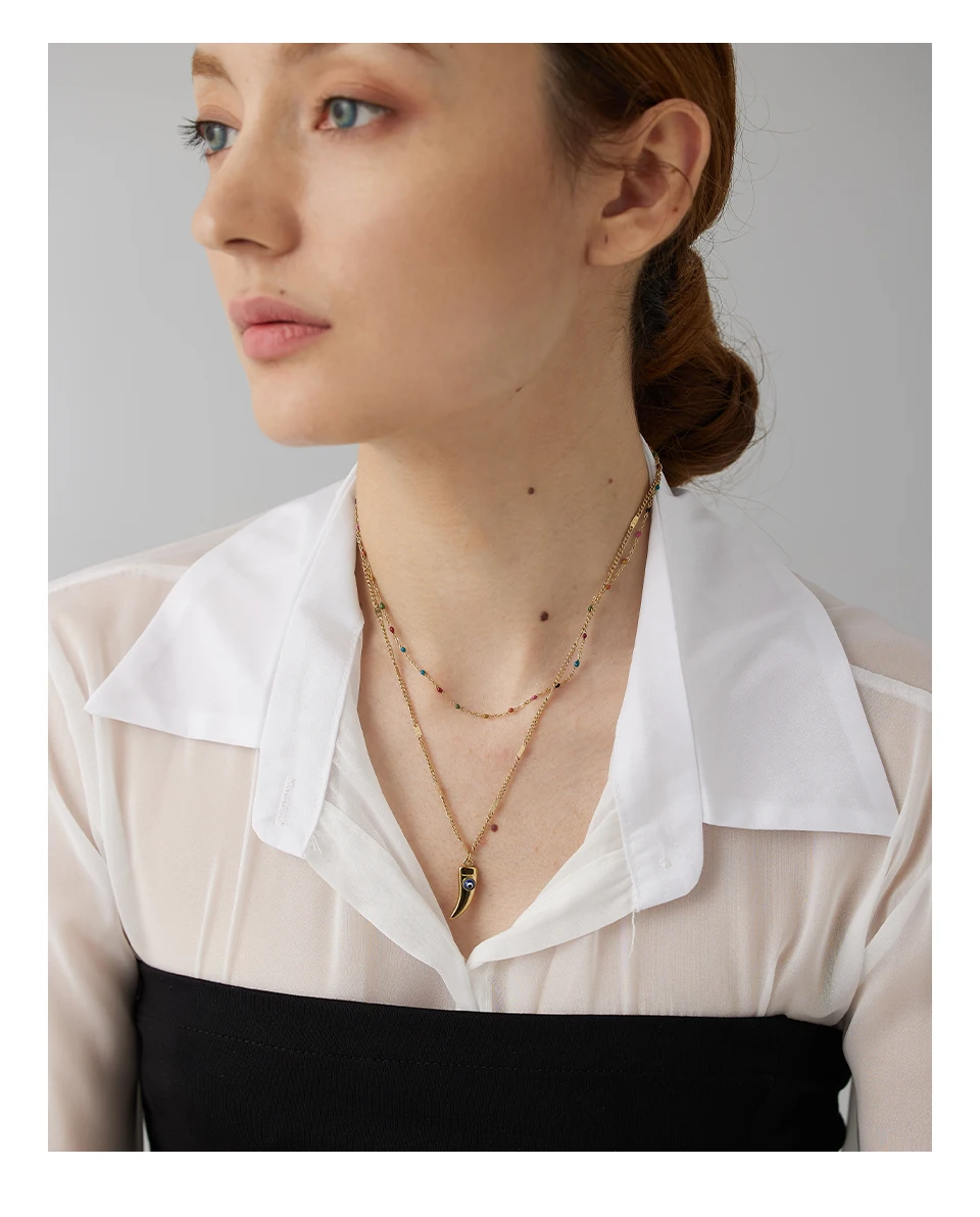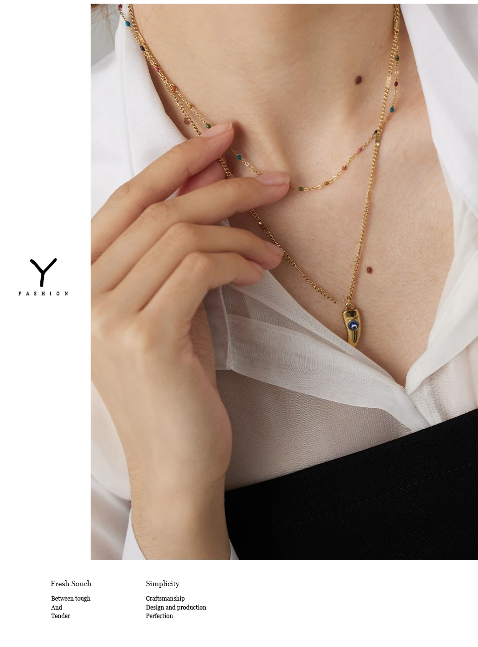 Yhpup Stainless Steel Horns Pendant Necklace Exquisite Colorful Enamel Double Layered Jewelry Collar Necklace Party Gift 2022