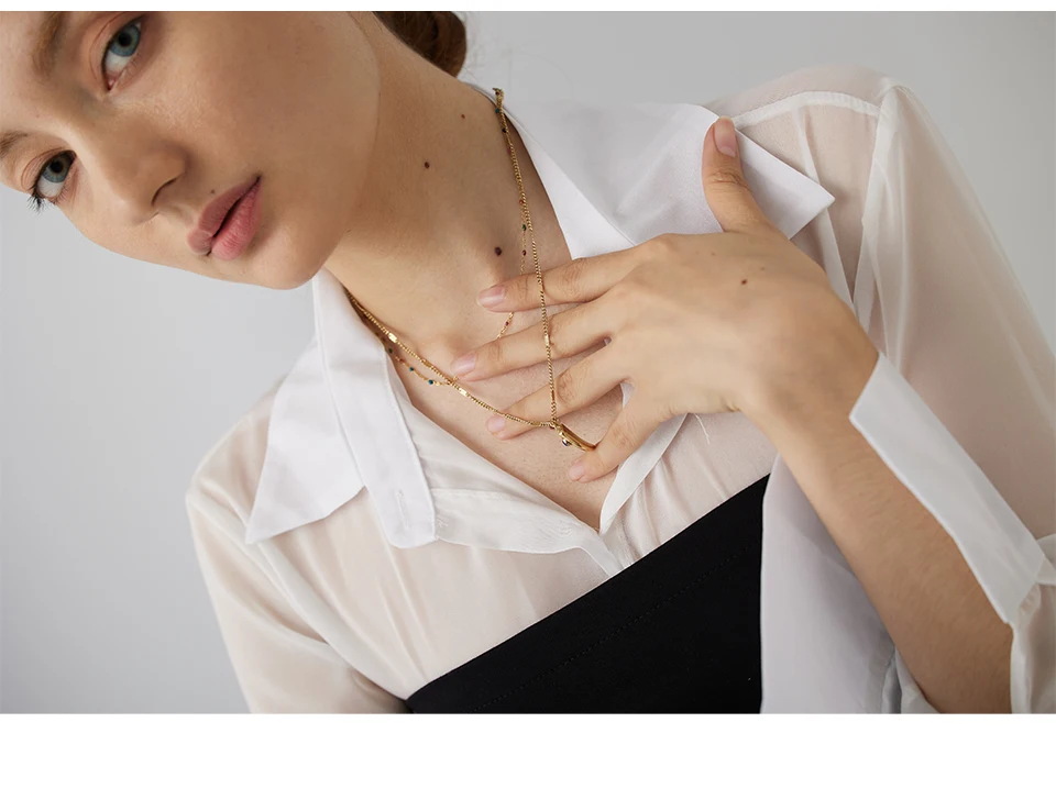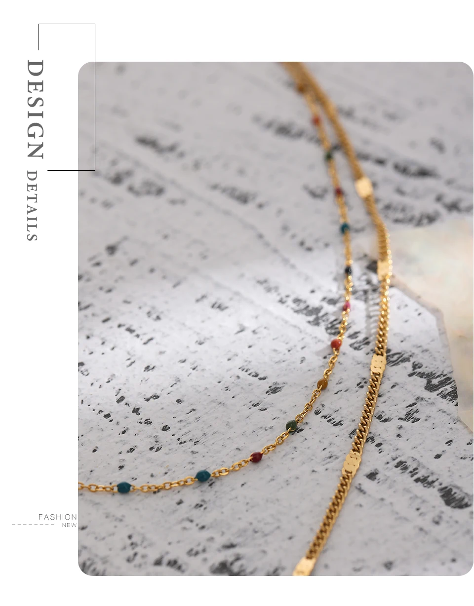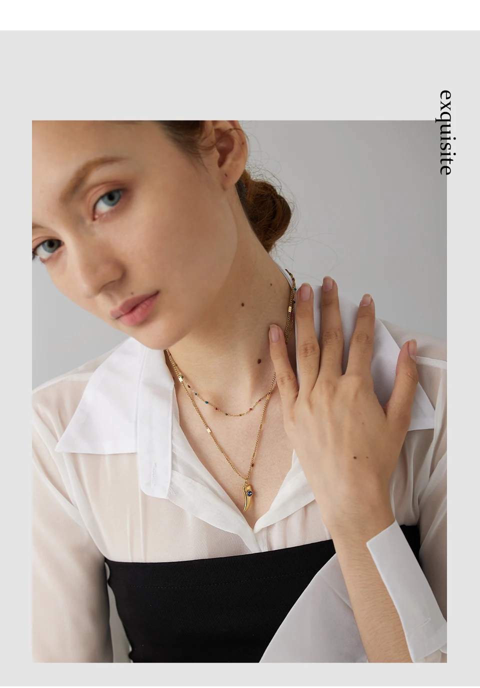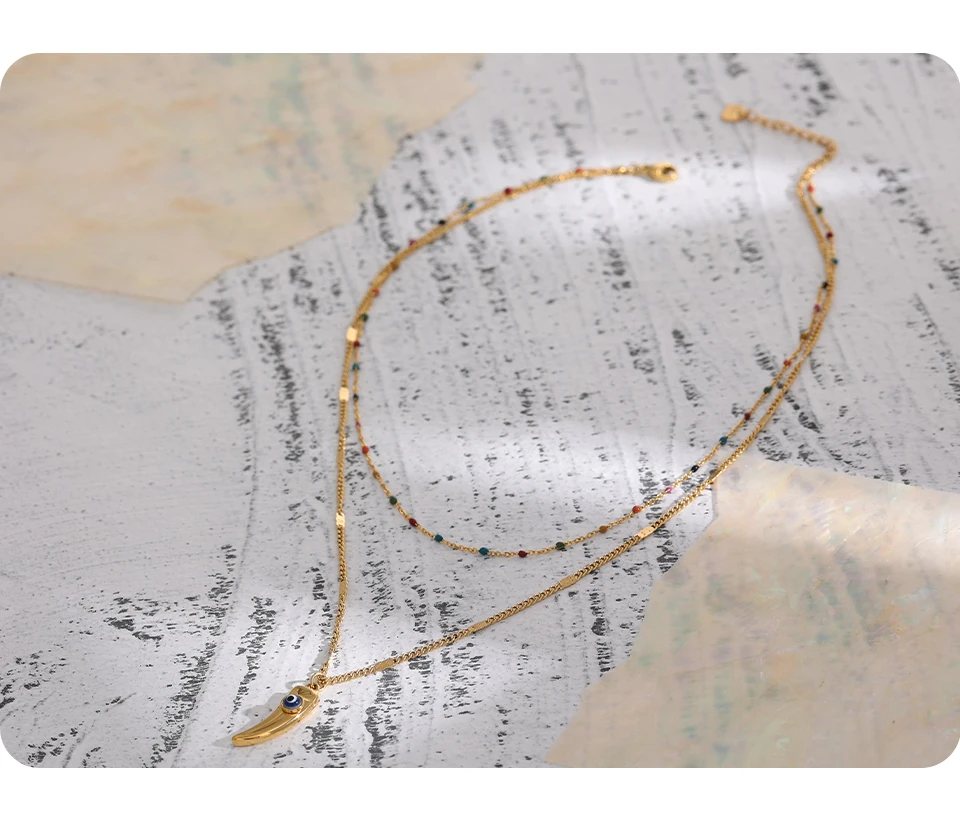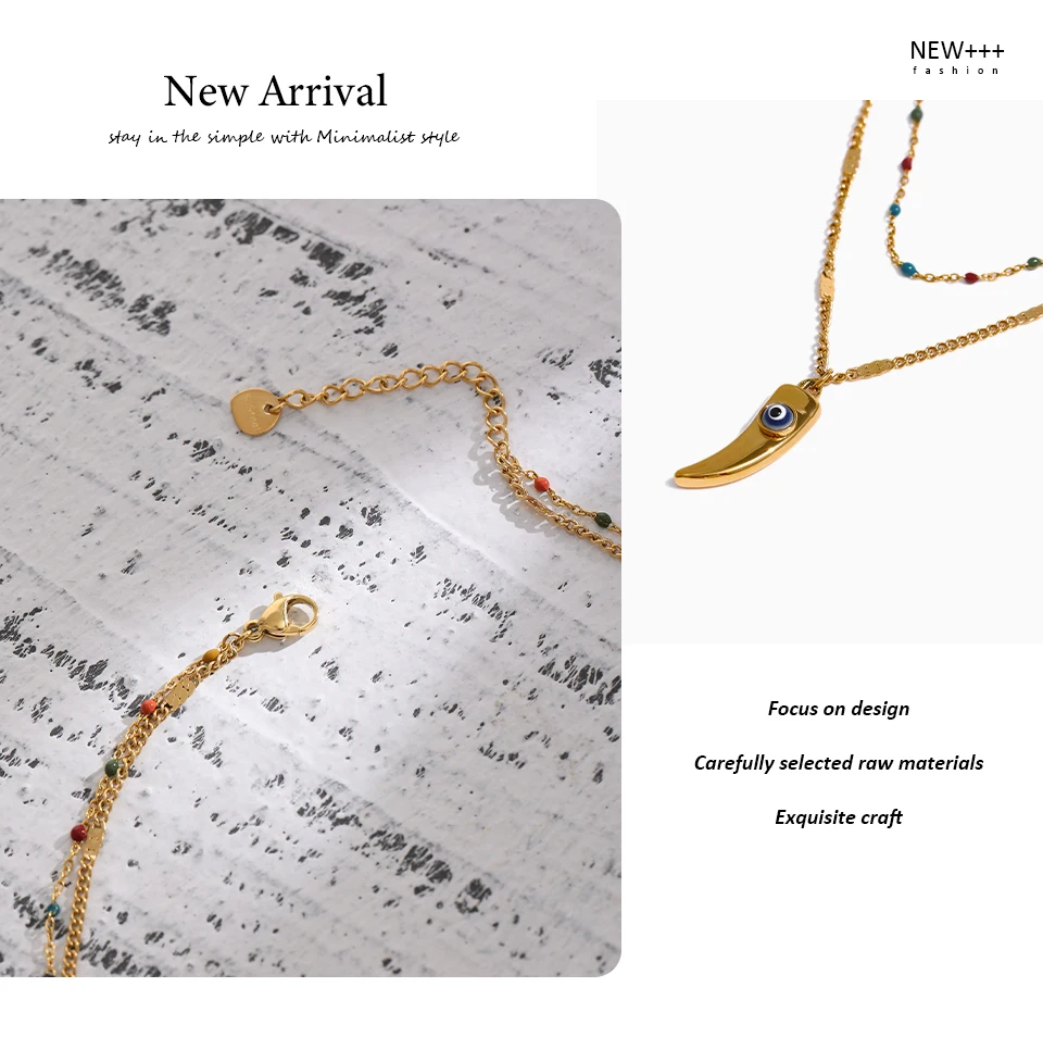 Yhpup Stainless Steel Horns Pendant Necklace Exquisite Colorful Enamel Double Layered Jewelry Collar Necklace Party Gift 2022