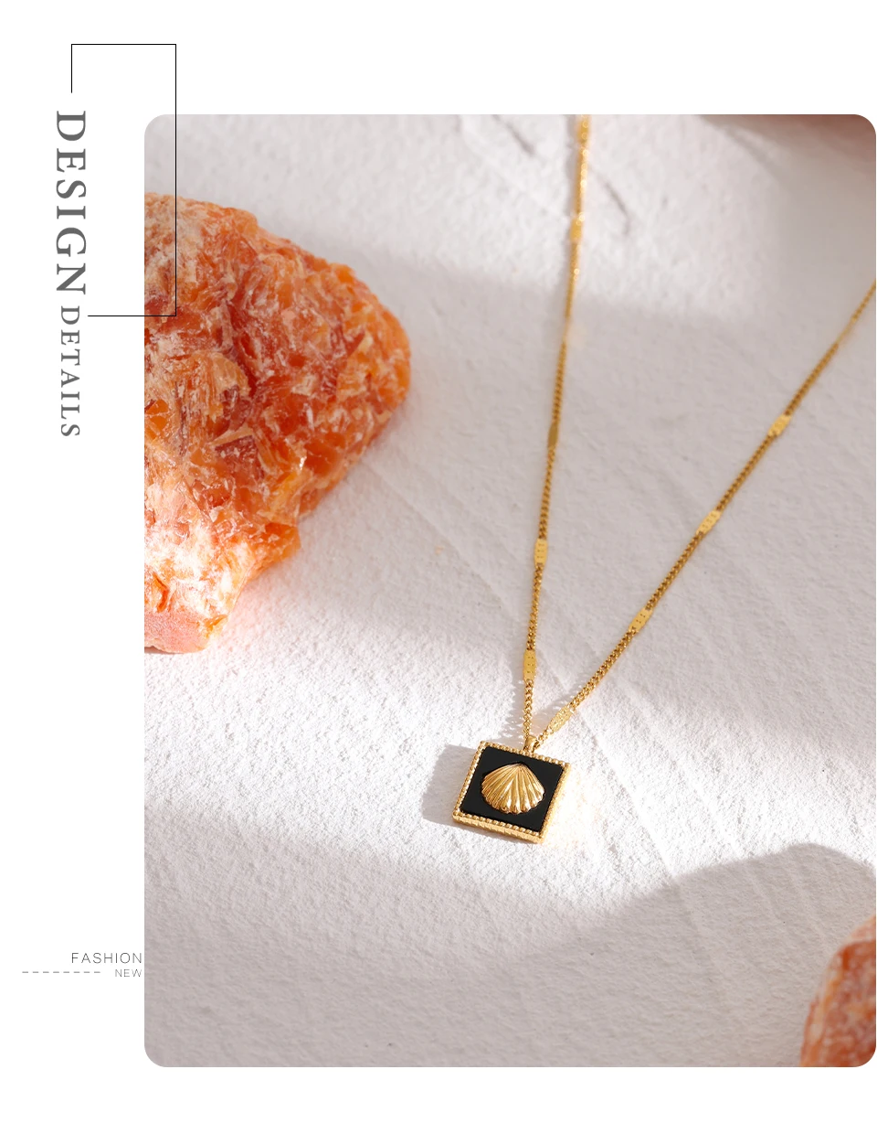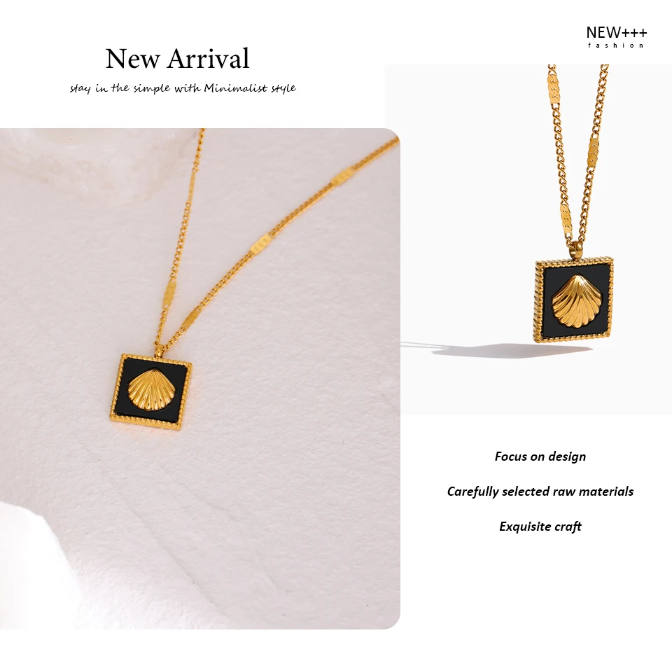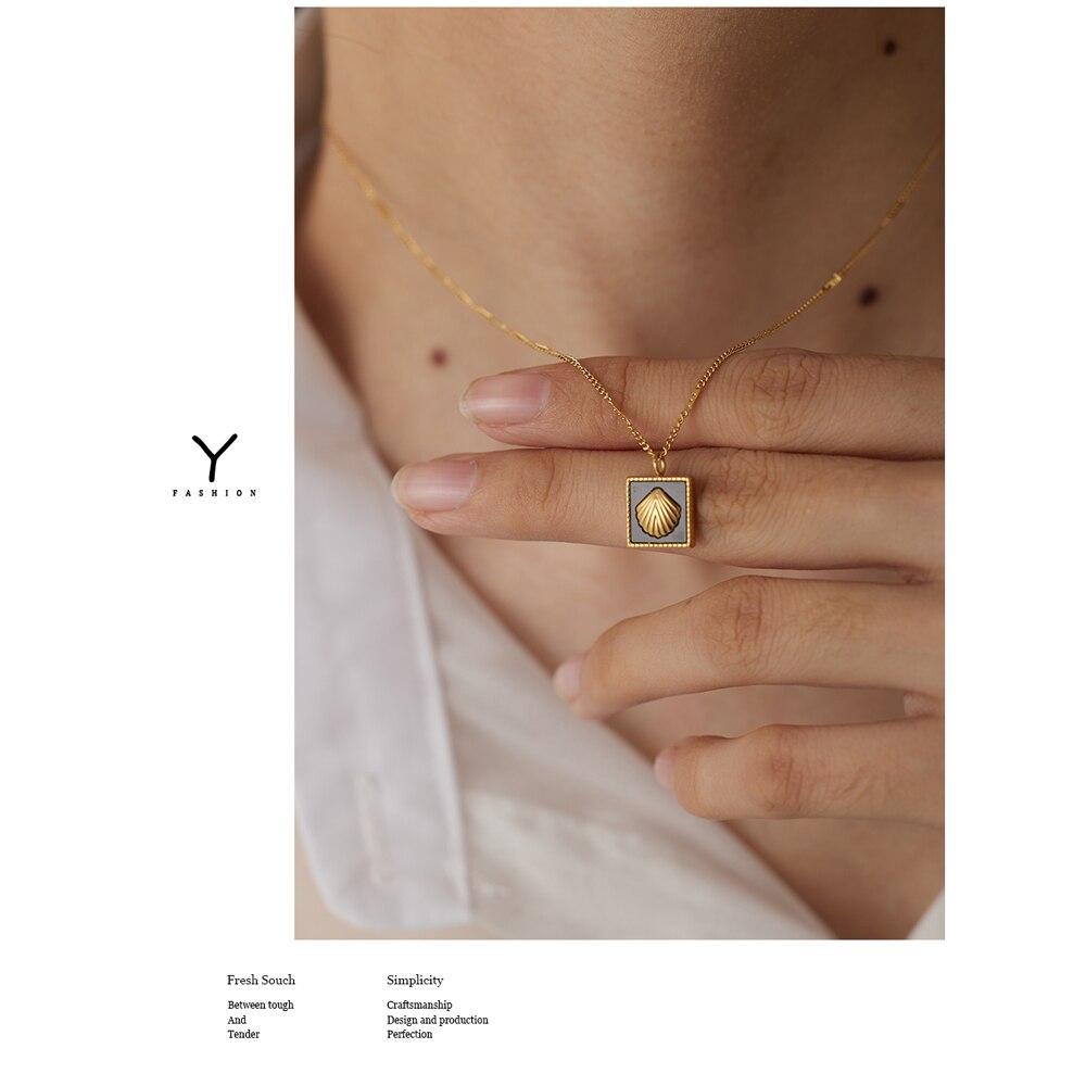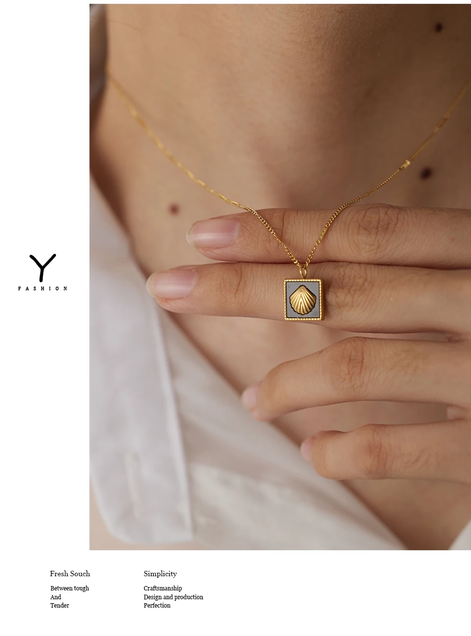 Yhpup Stainless Steel Shell Necklace for Women Metal 18 K Square Collar Necklace Jewelry Bijoux Femme Gift New