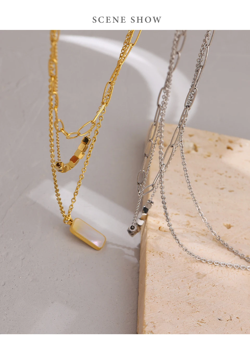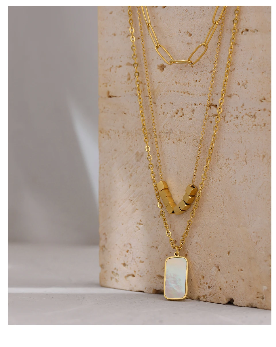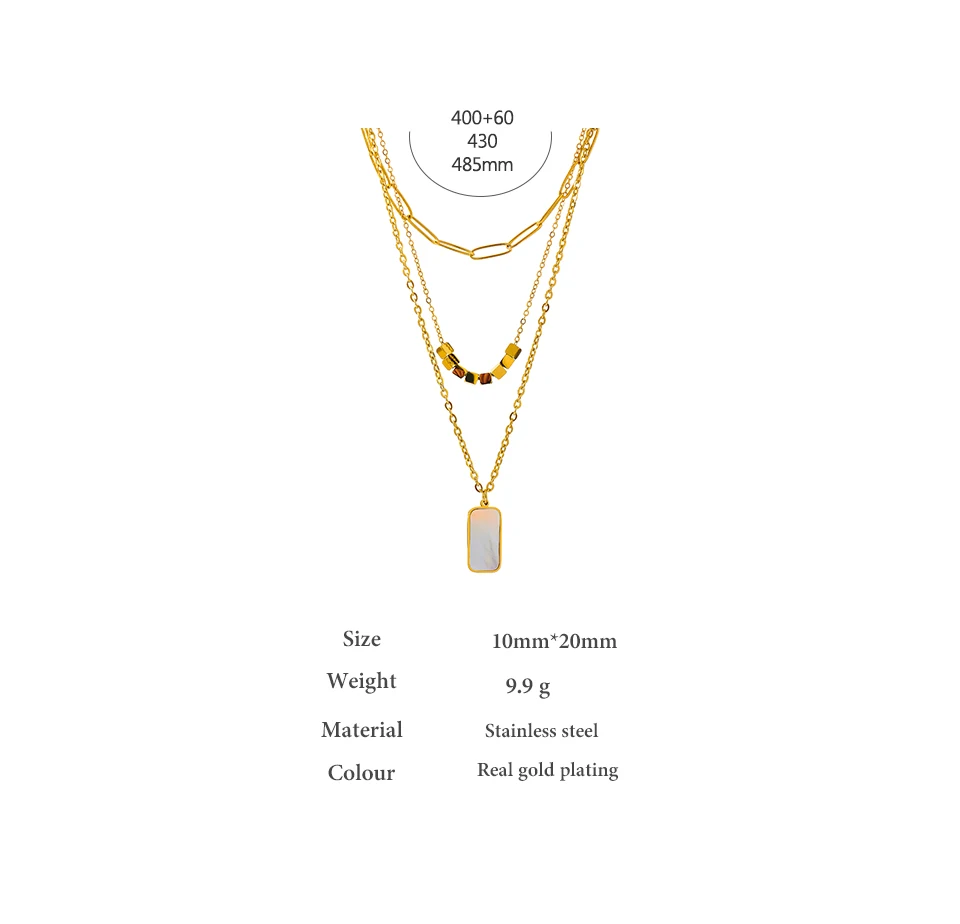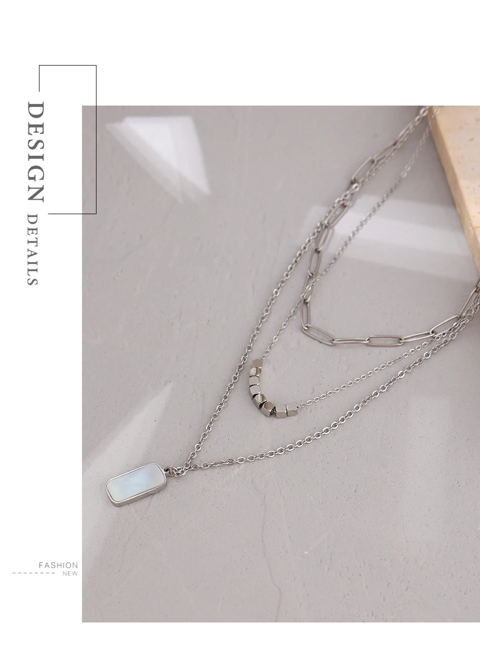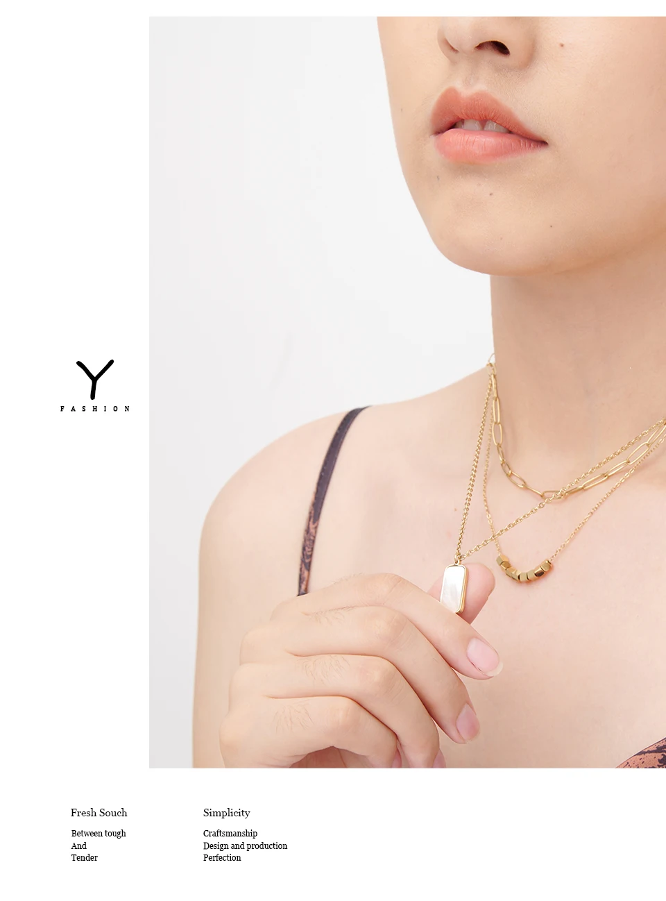 Yhpup Stylish Natural Shell Square Pendant Necklace Stainless Steel Metal Layered Collar Necklace Titanium Steel Jewelry 2022