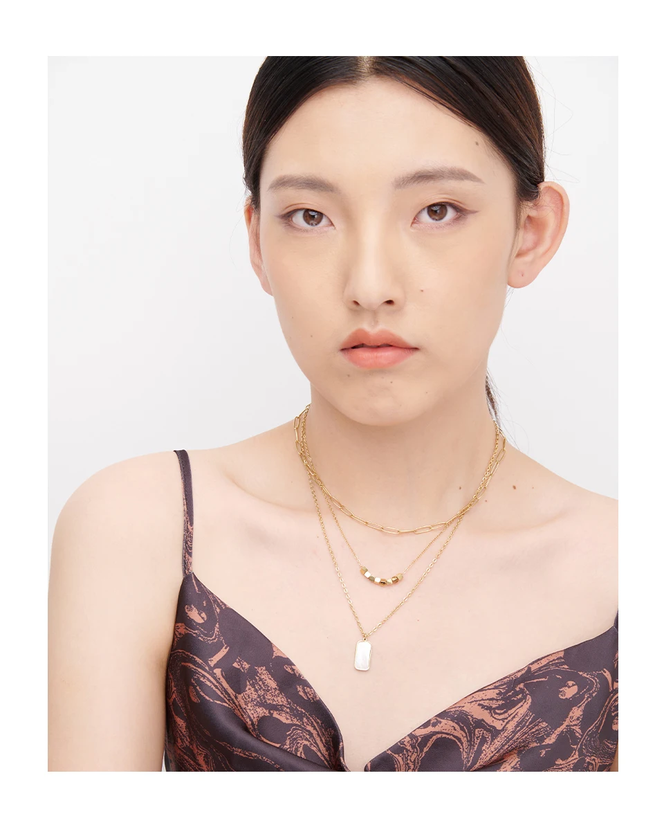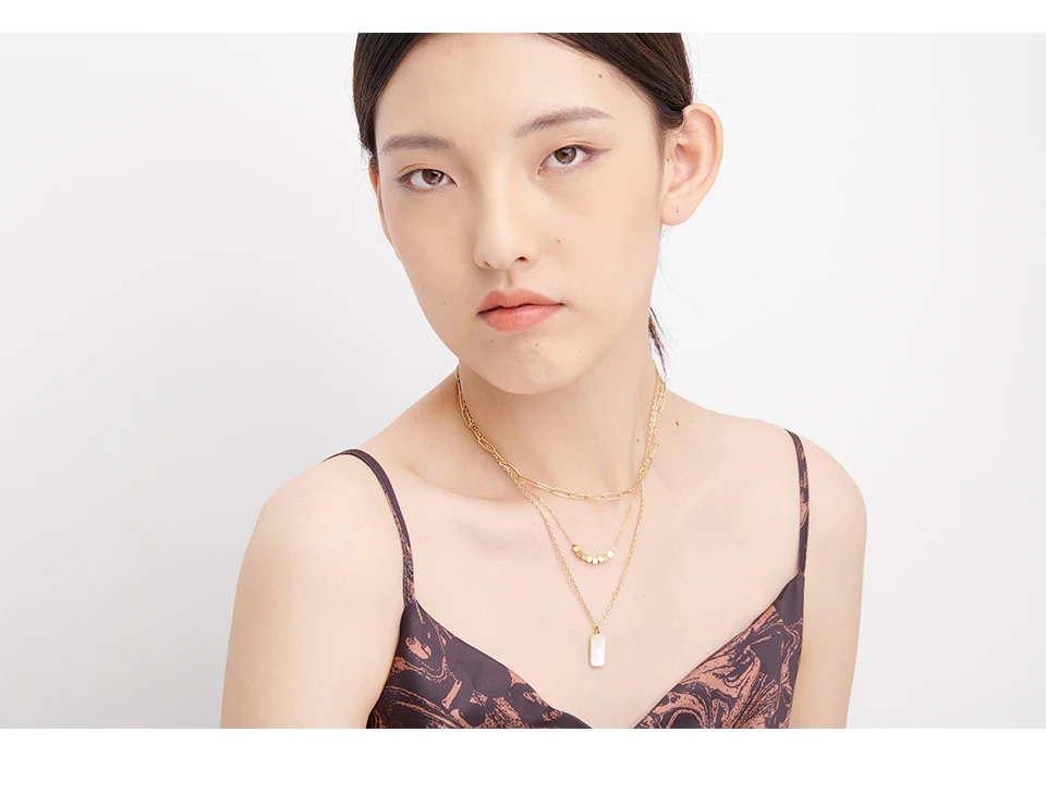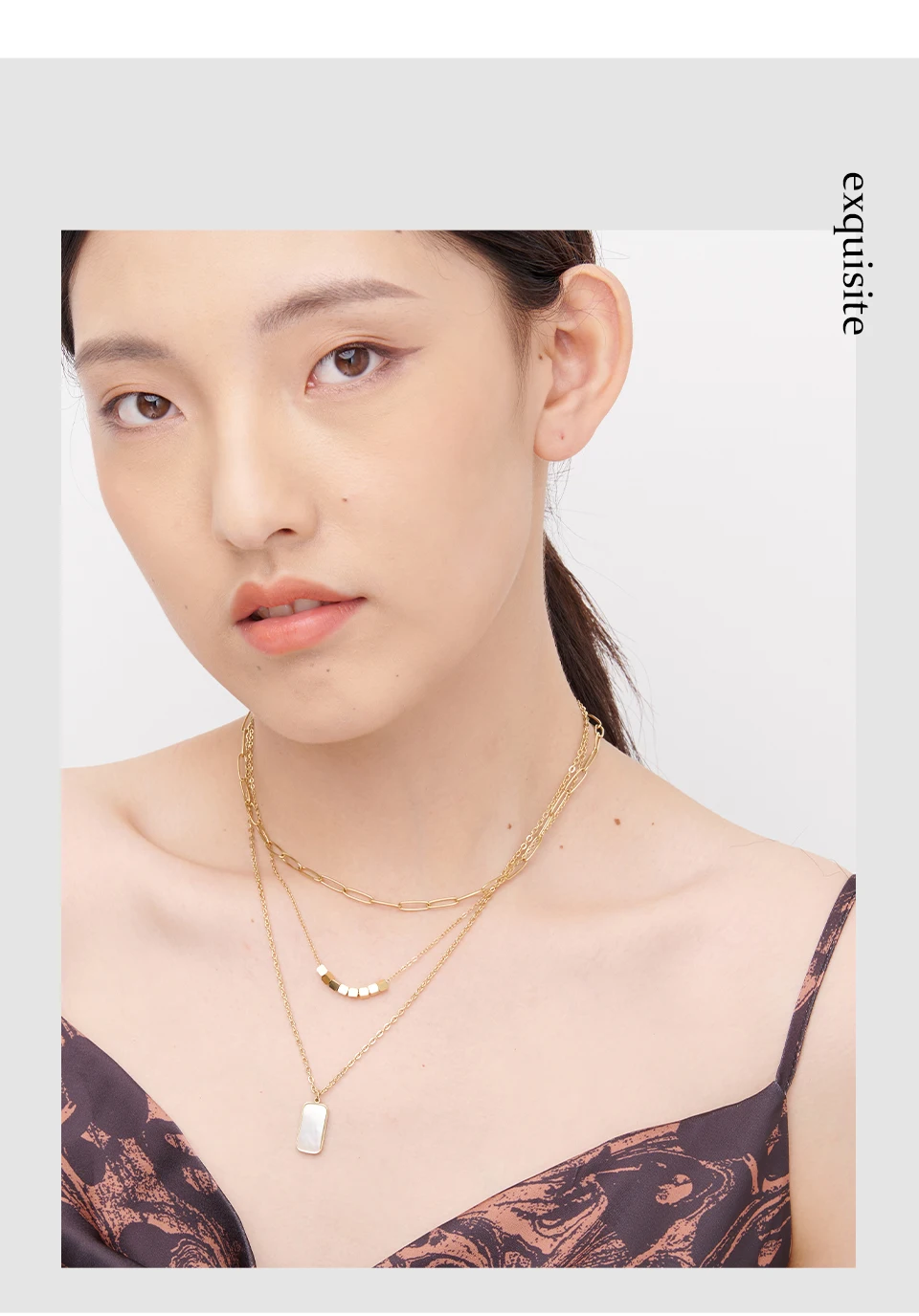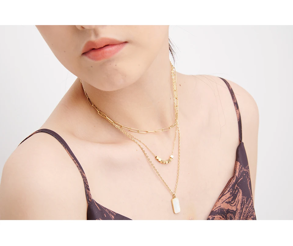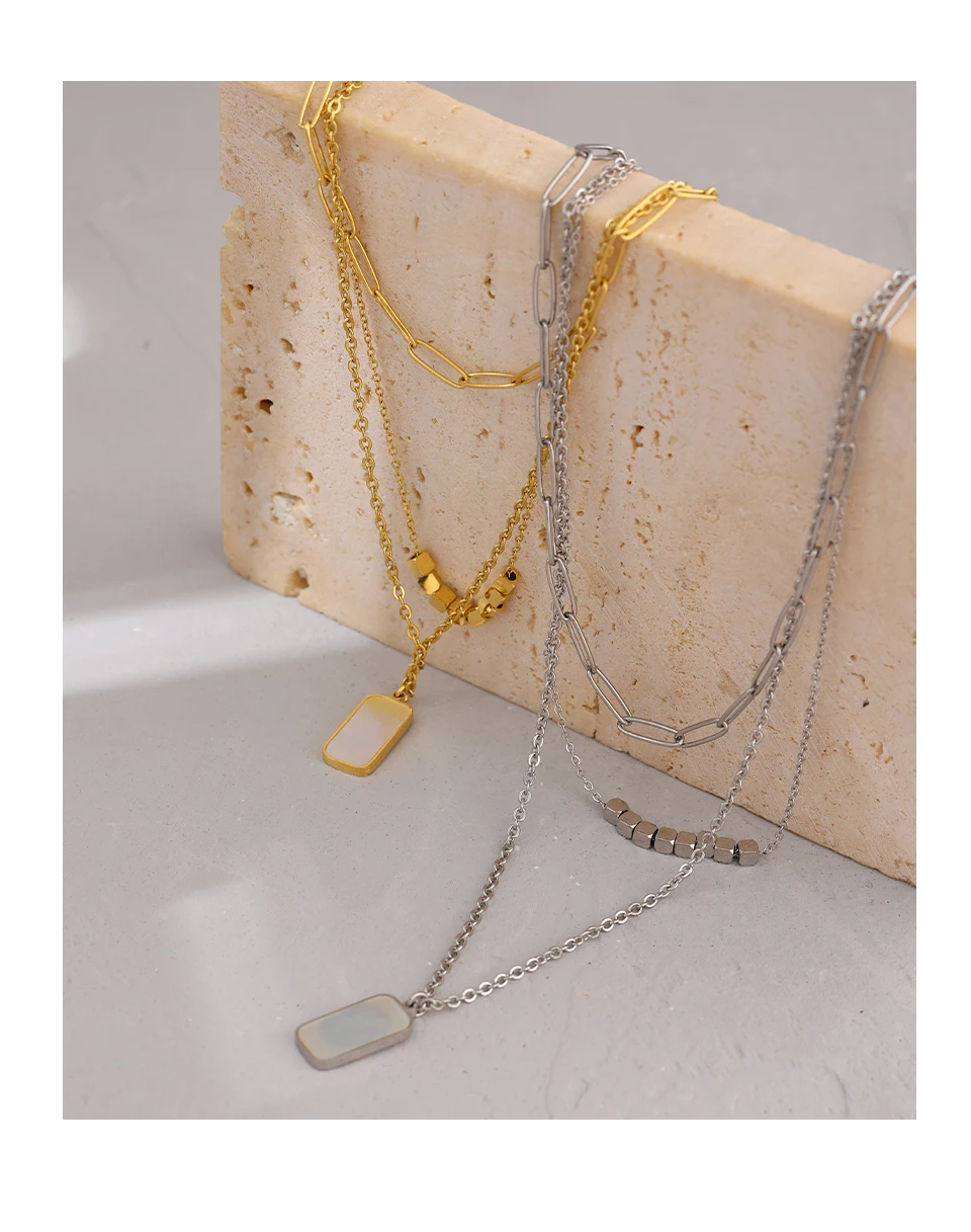 Yhpup Stylish Natural Shell Square Pendant Necklace Stainless Steel Metal Layered Collar Necklace Titanium Steel Jewelry 2022