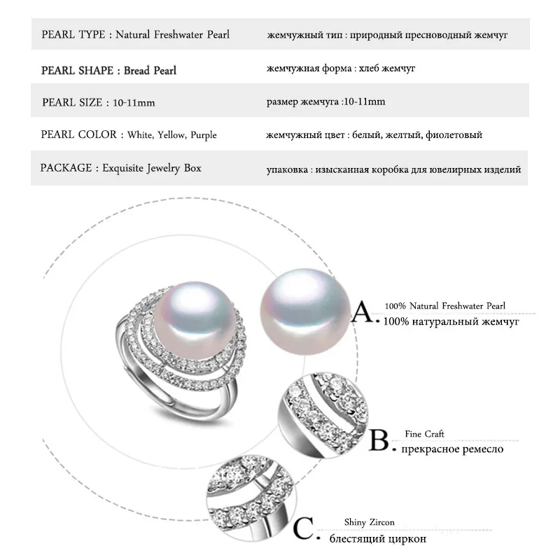 11-12mm Big Size Natural Pearl Ring For Women Fashion AAA CZ 925 Sterling Silver Jewelry white pink purple ring