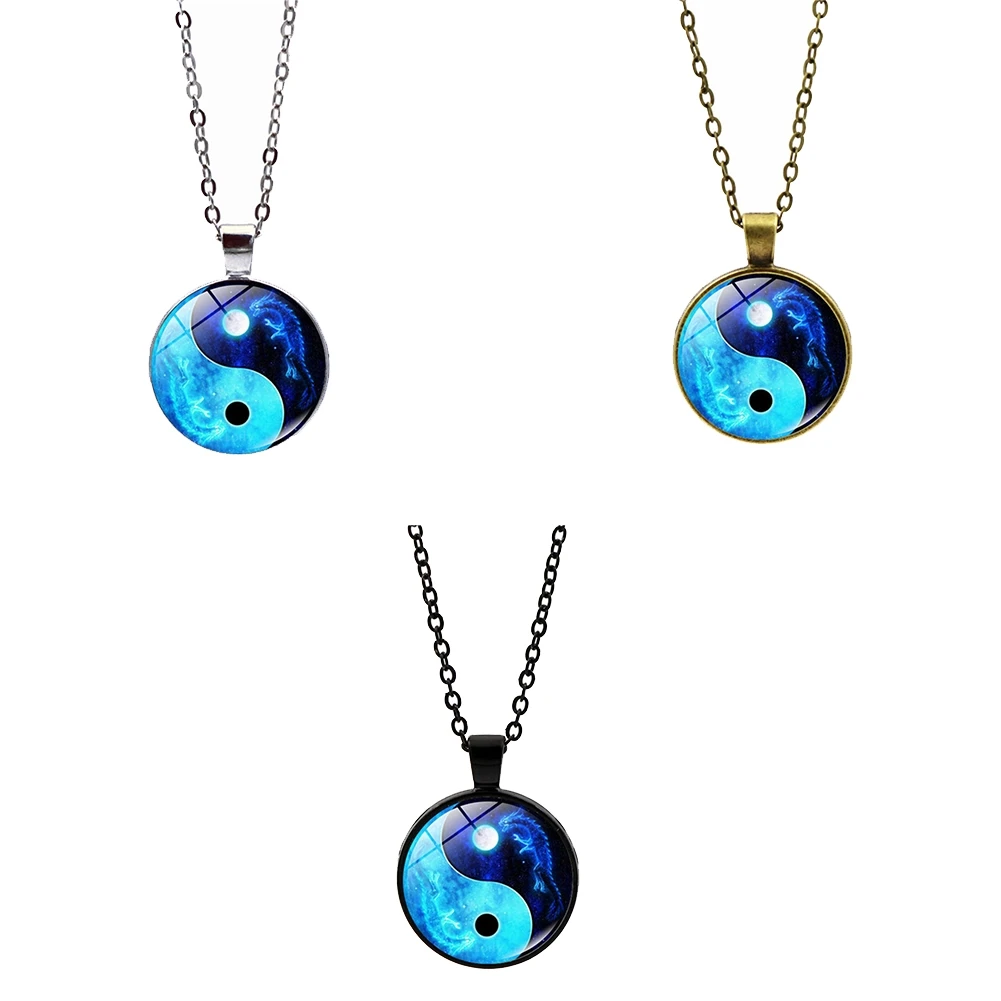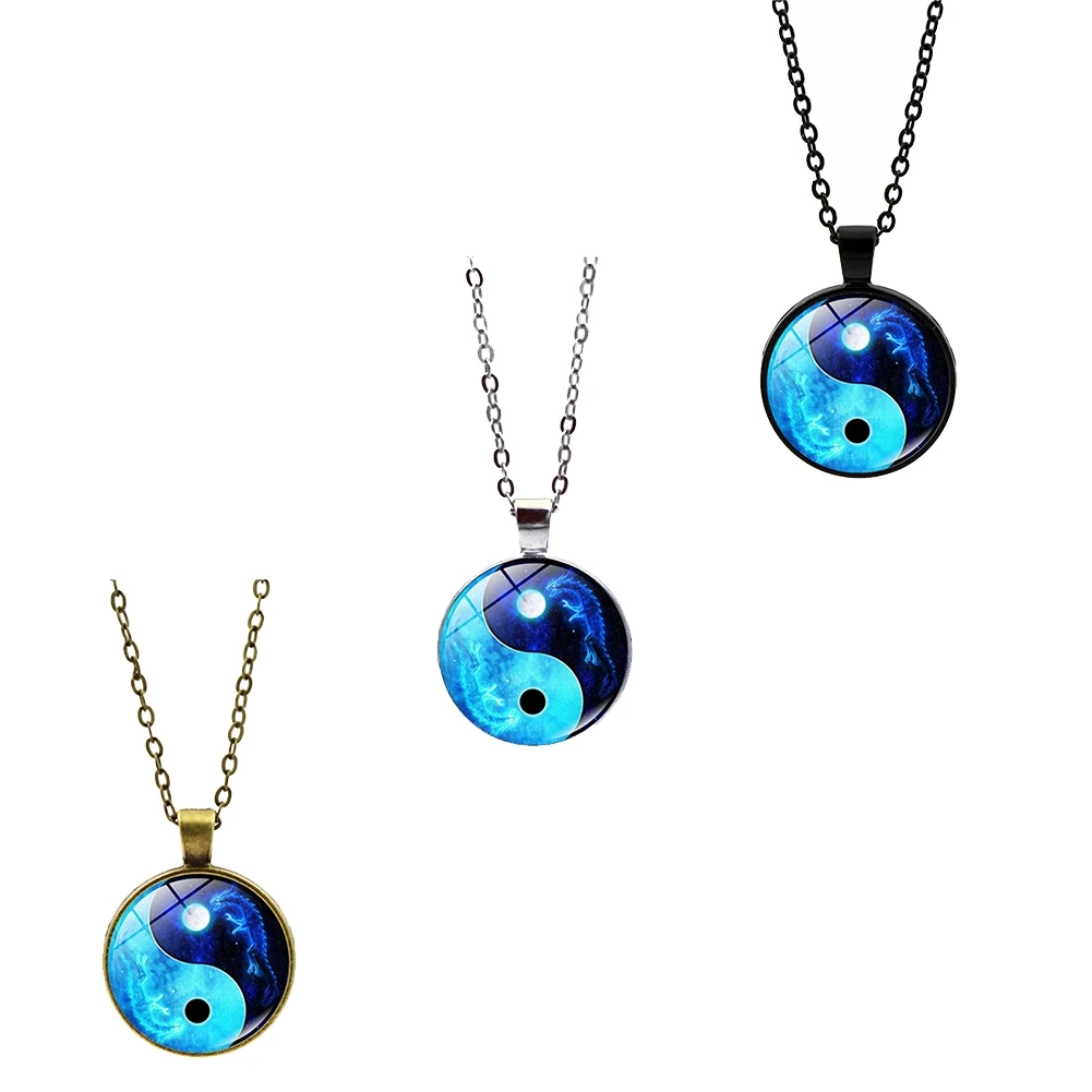 Yin Yang Tai Chi Pendant Necklace Sweater Chain Chinese Style Time Glass Stone Unisex Neck Decor Jewelry Accessories