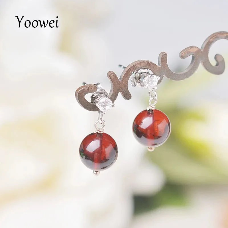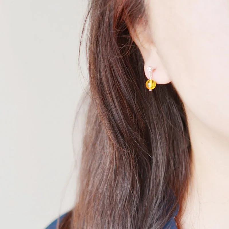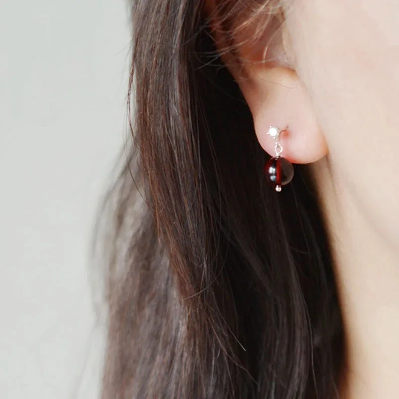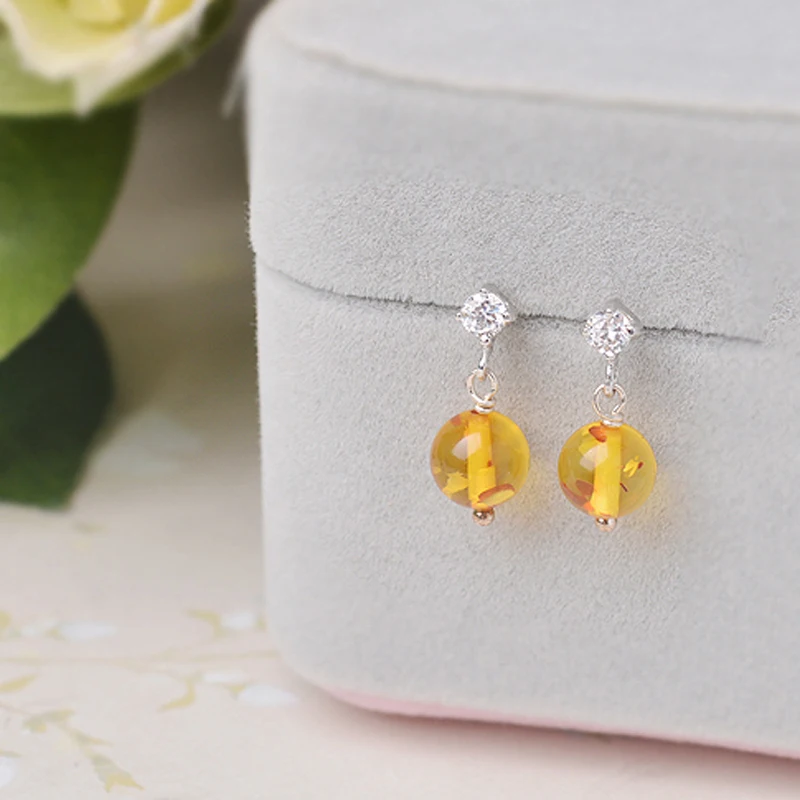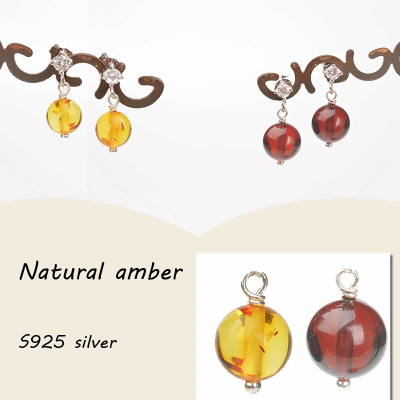 2 Color New Natural Amber Earrings for Women 925 Sterling Silver Round Beads Drop Earrings Baltic Amber Jewelry Wholesale