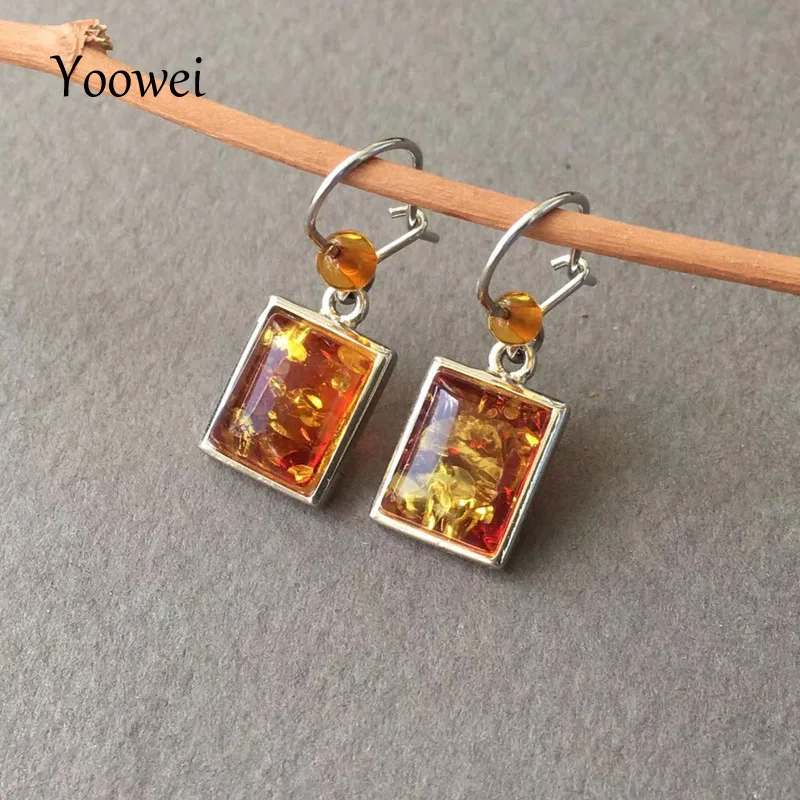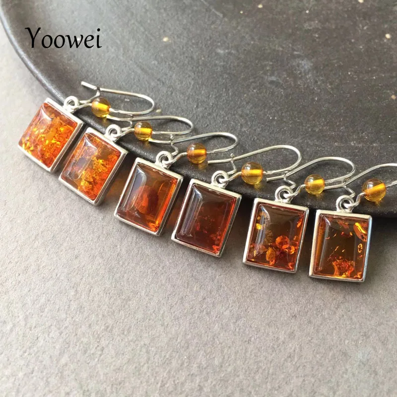 3 Colors Baltic Amber Earrings Etsy Supplier Women Unique Square Shape Dangling Genuine Natural Amber Jewelry Wholesale