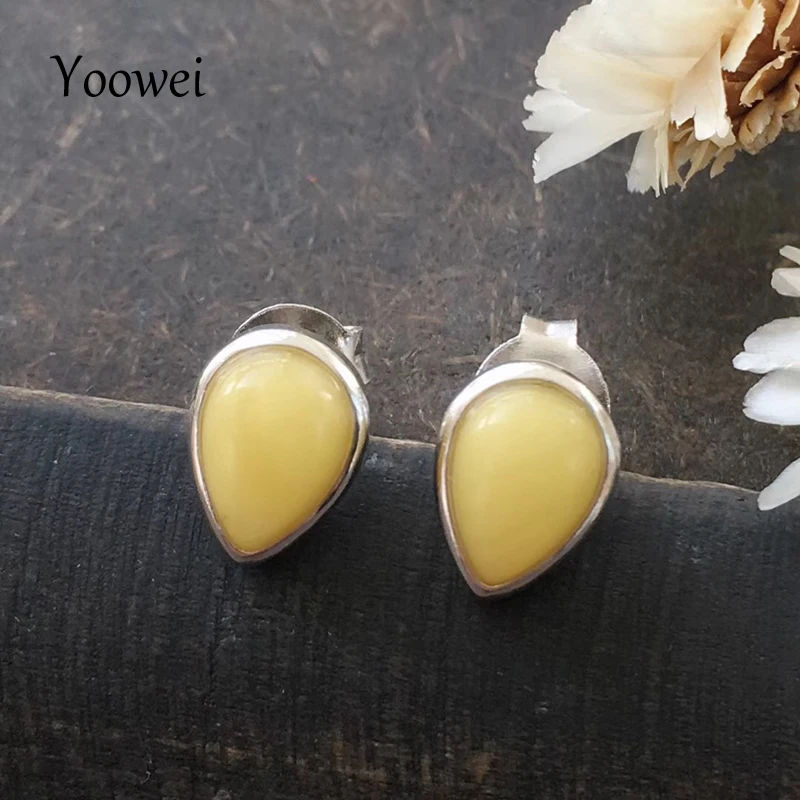 3 Colors Baltic Amber Earrings for Women 8*6mm Tiny Teardrop Shape Genuine Natural Amber Stud Earrings Jewelry Wholesale