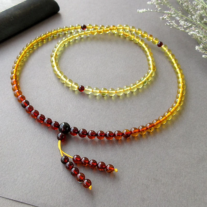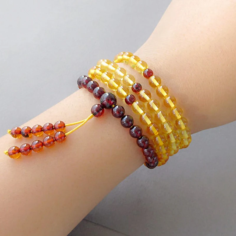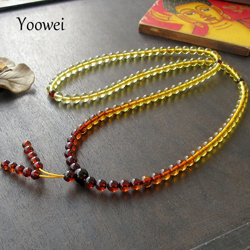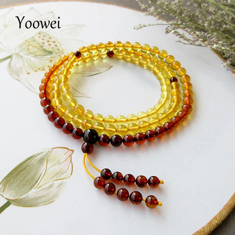 5.6mm Natural Amber Bracelets Mala Rosary Tibetan Buddhist Jewelry Gifts Stretch 108 Prayer Baltic Amber Beads Jewelry