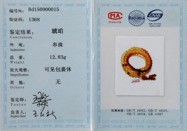 • Certificate Number: amber rosary bracelet