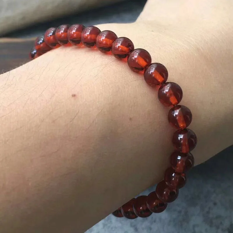 6mm Natural Amber Bracelet Cherry Rounded Beads Female Luxury Gift Original Baltic Precious Stone Amber Jewelry Wholesale