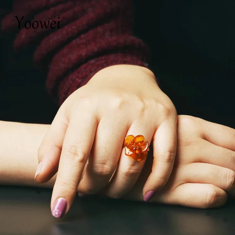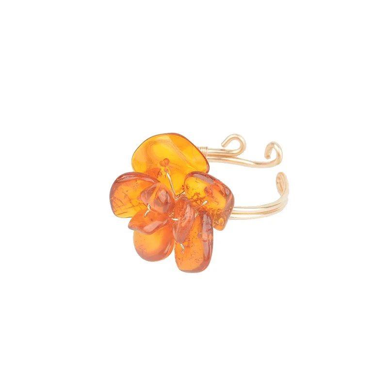 Baltic Amber Flower Rings for Women Genuine Gemstone Stunning Natural Amber Chips Ring Handmade Jewelry Anel Wholesale