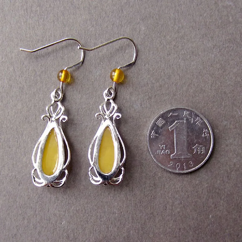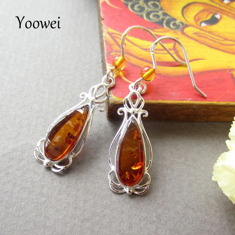 Cognac Natural Amber Earrings Girls Women Certificate Authenticity Teardrop Dangle Genuine Pendientes ambar Jewelry Gifts
