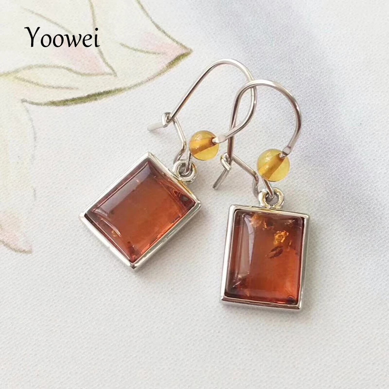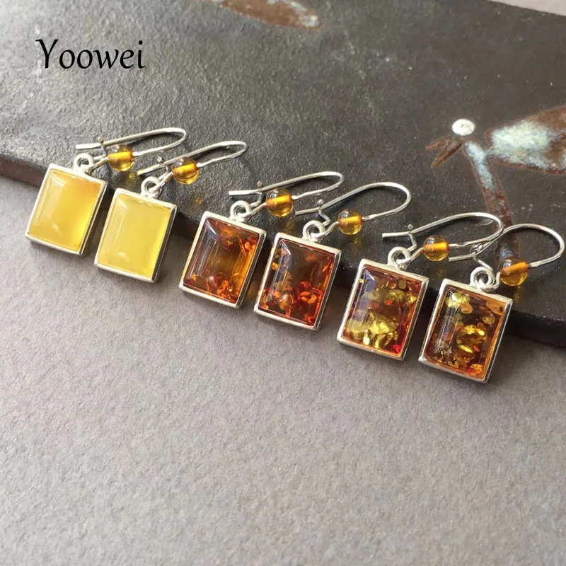 Genuine Geometric Amber Earrings for Women 3 Color Drop Dangling Earrings Original Baltic Natural Amber Jewelry Wholesale