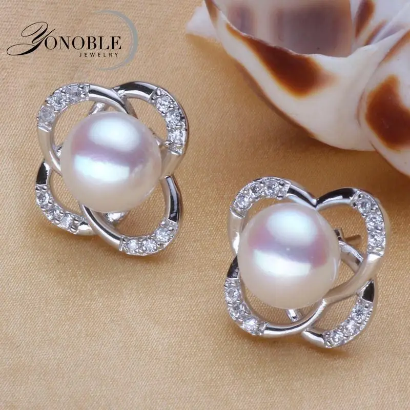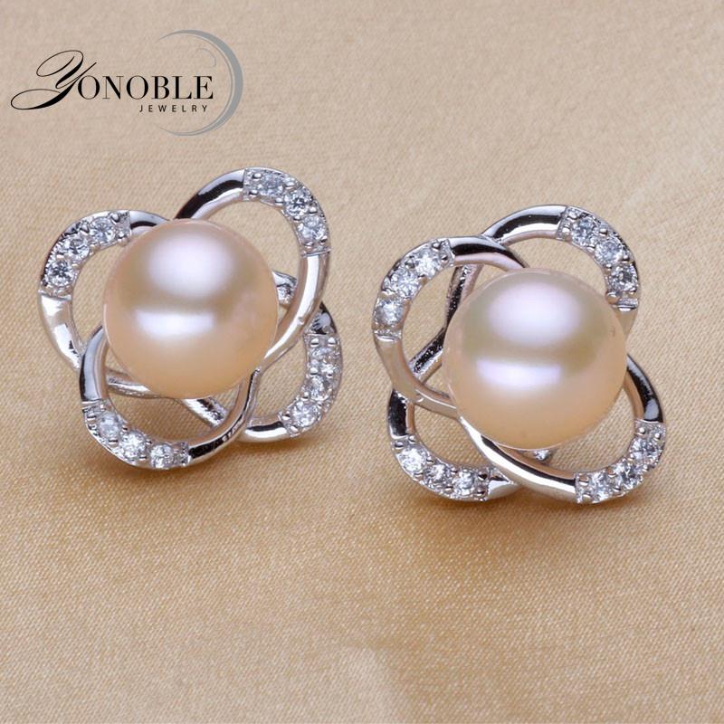 YouNoble real pearl earrings women,wedding natural pearl earring sterling sliver trendy girl birthd best gift white